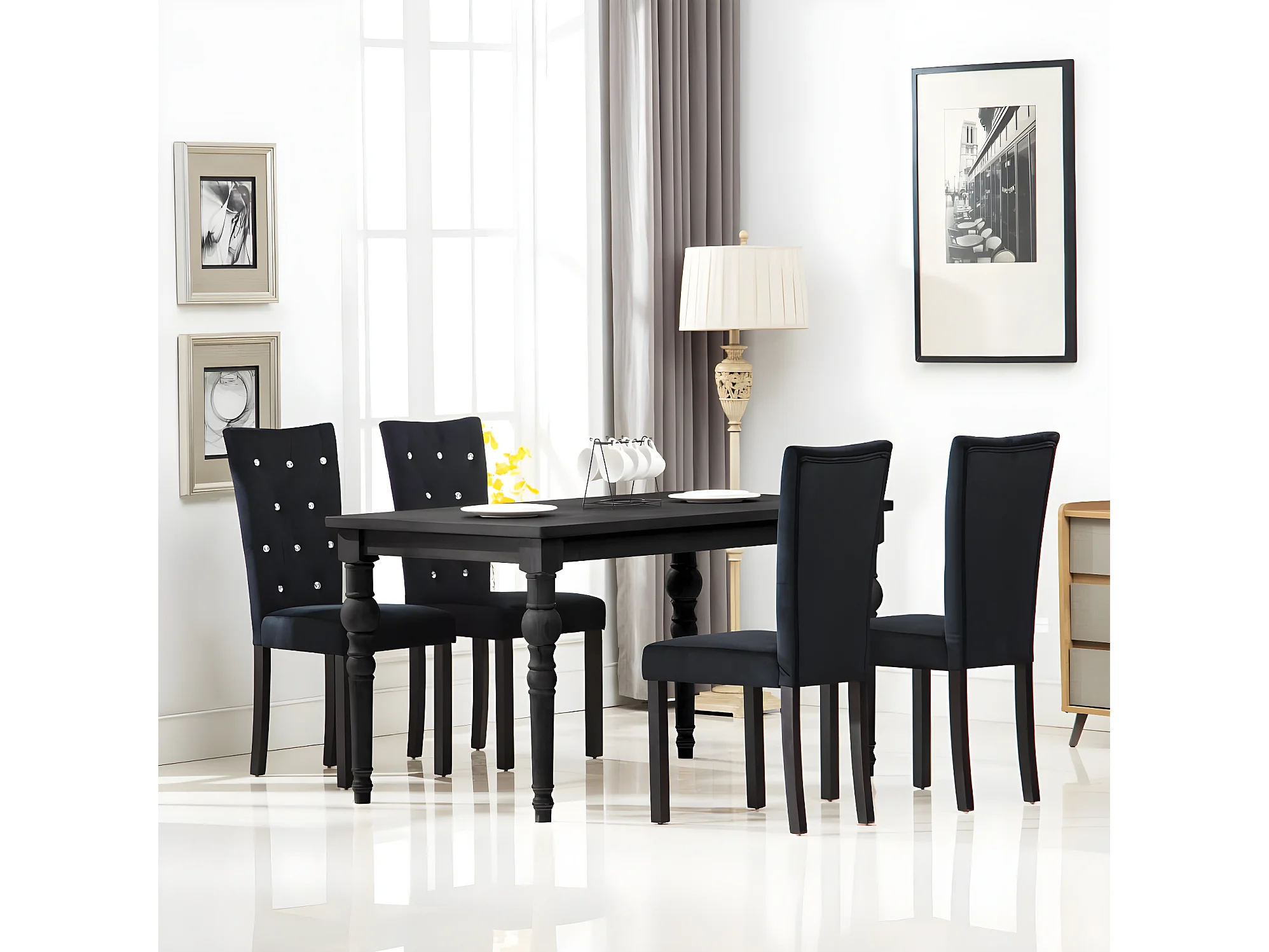 Chaise de salle à manger velours et pieds bois noir Karmen - Lot de 4