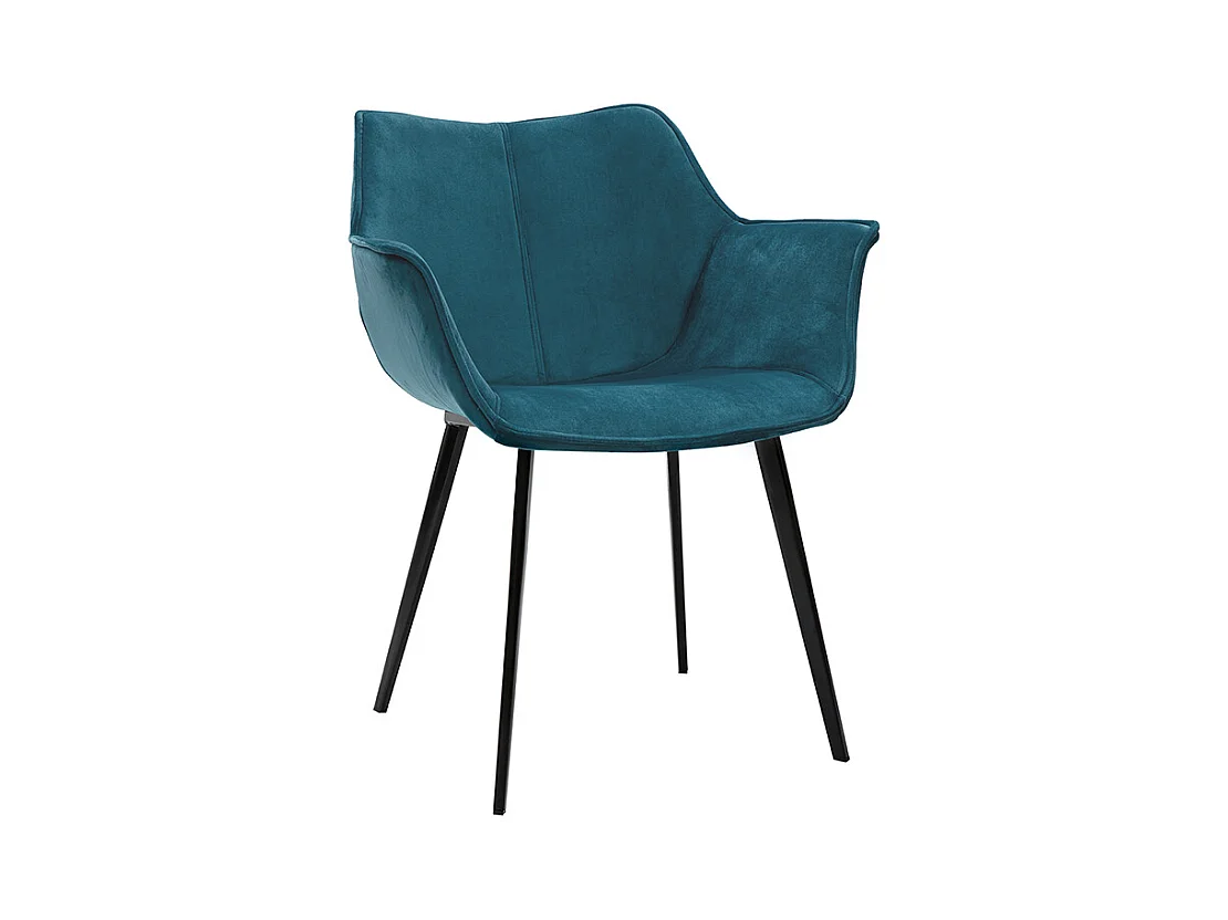 Chaise design en tissu velours bleu pétrole et métal noir VOLO