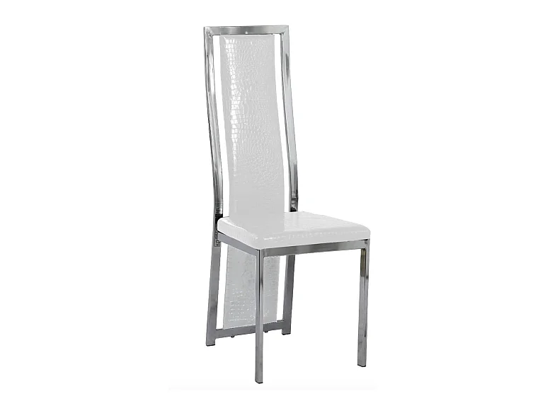 Chaise design simili cuir effet croco et acier chromé Milana - Lot de 6-Couleur Blanc