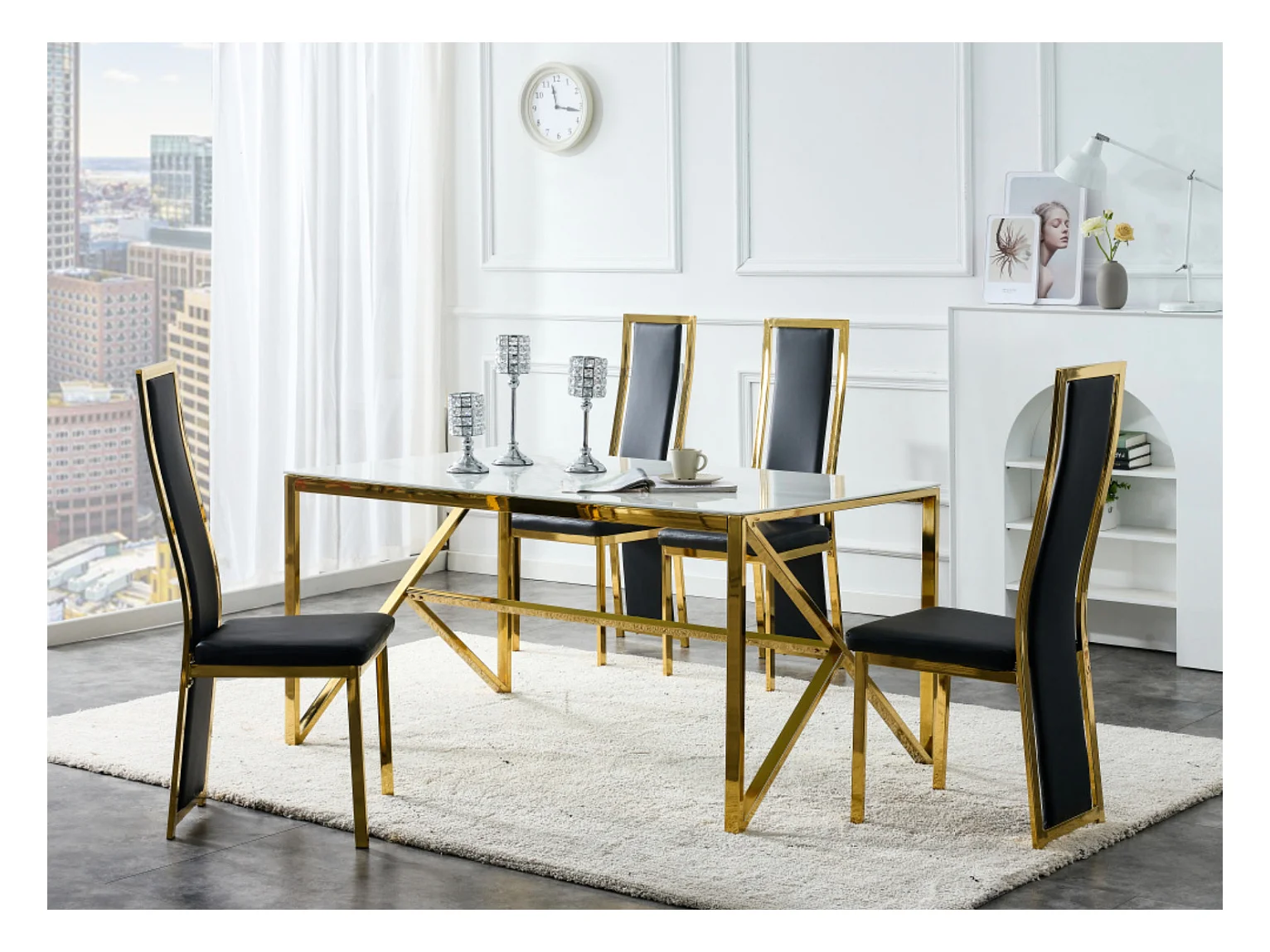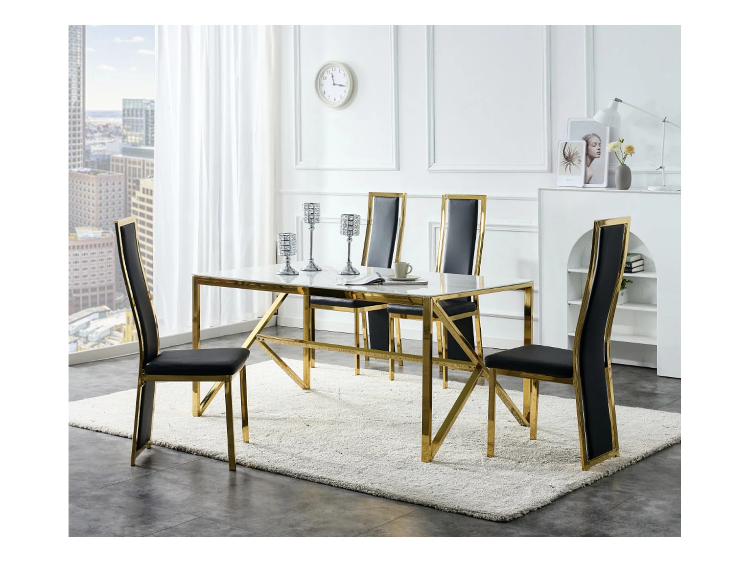 Chaise design simili cuir et acier doré Milana - Lot de 6-Couleur Noir