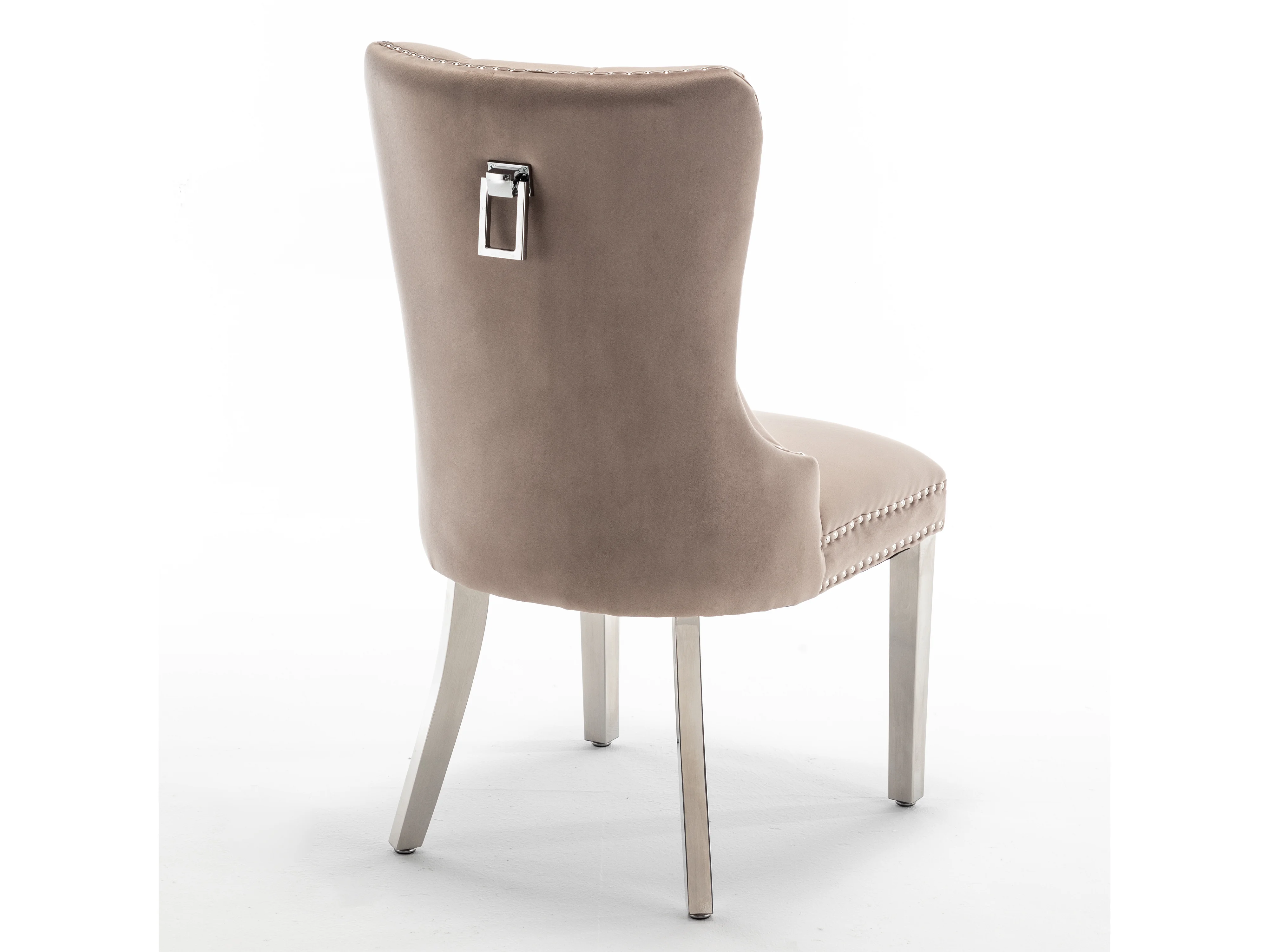 Chaise design velours capitonné clouté et pieds acier chromé Kazar - Lot de 2-Couleur Beige foncé