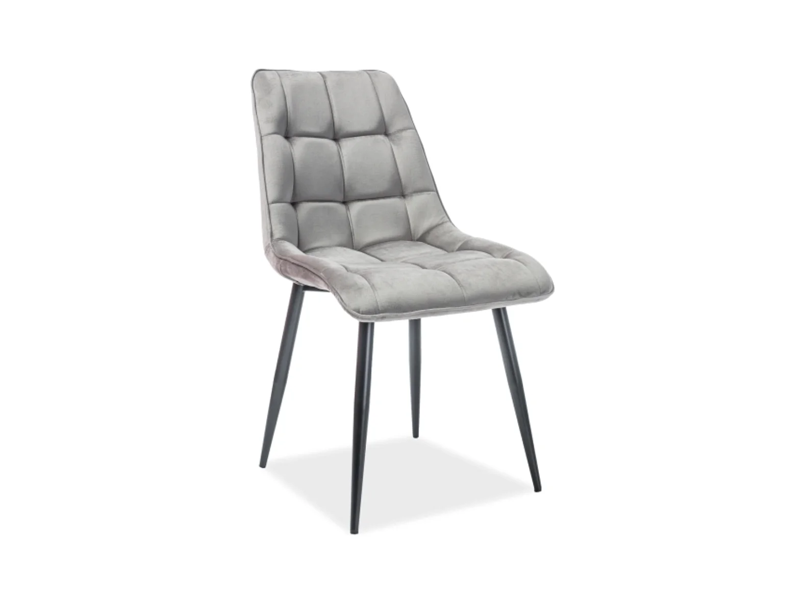 Chaise en velours gris avec fins pieds en métal noir MEET