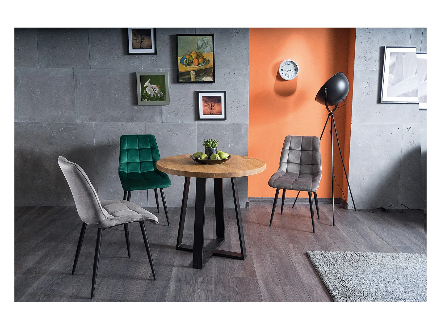 Chaise de salle à manger capitonnée en velours gris et pieds en métal noir ODUNA