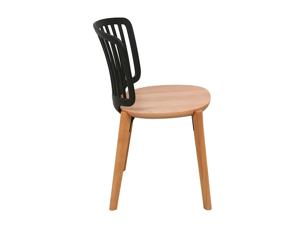 Chaise Eira Design Scandinave – Dossier Résine Noir, Assise Bois – Pieds Bois Naturel