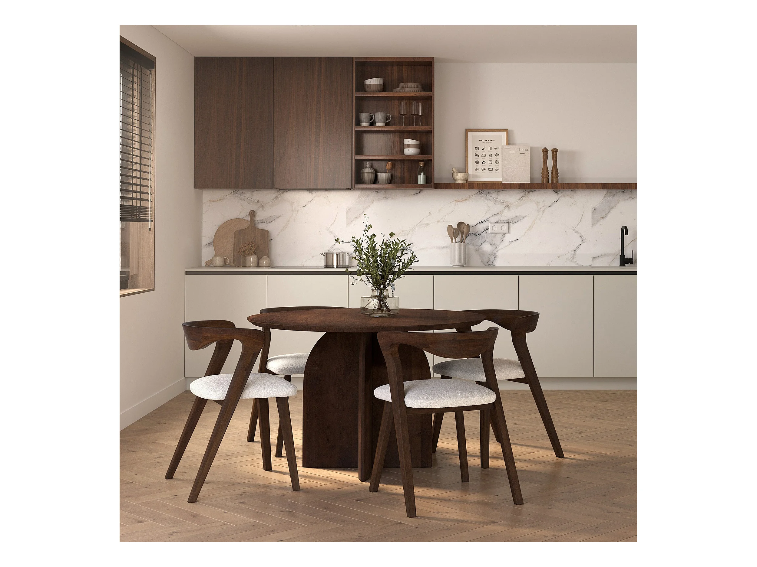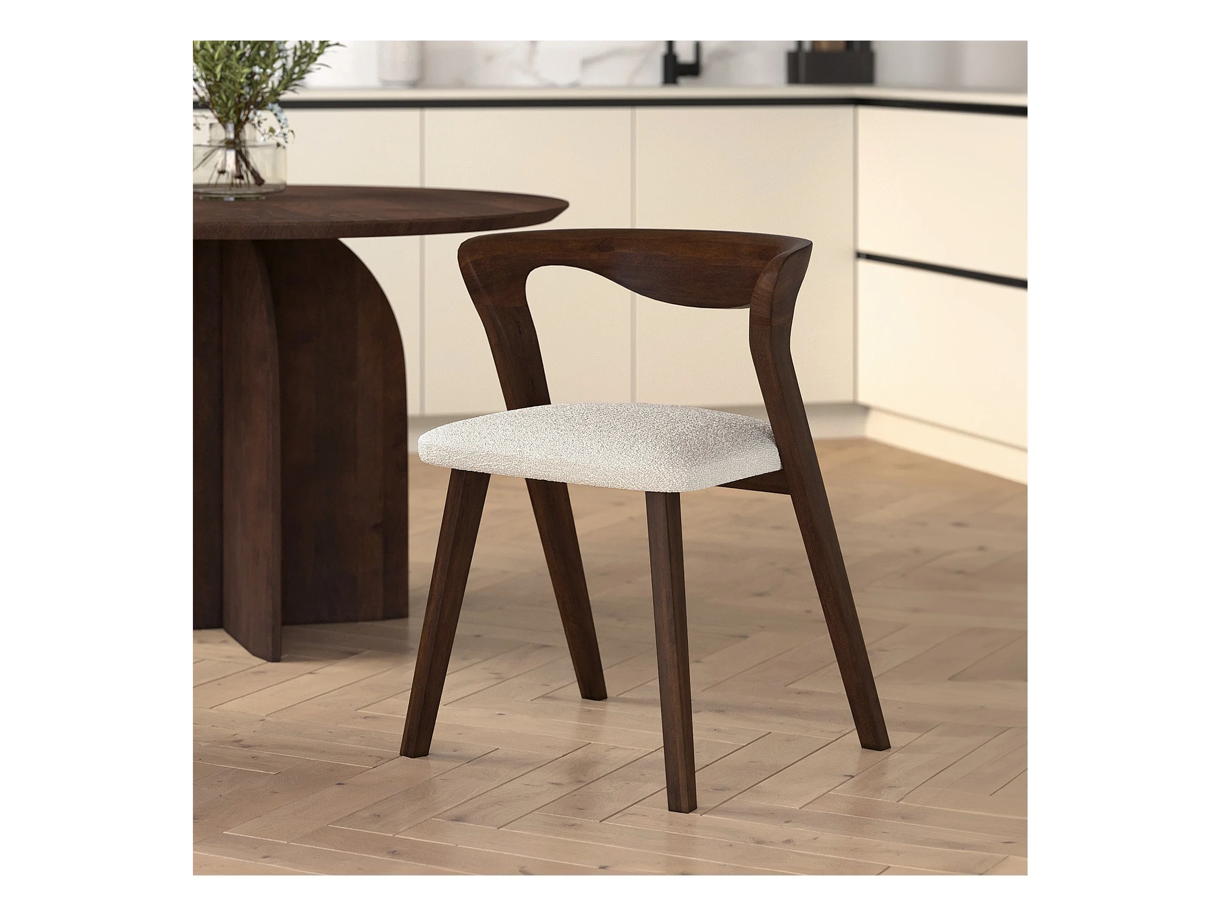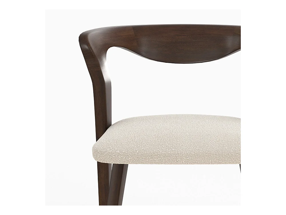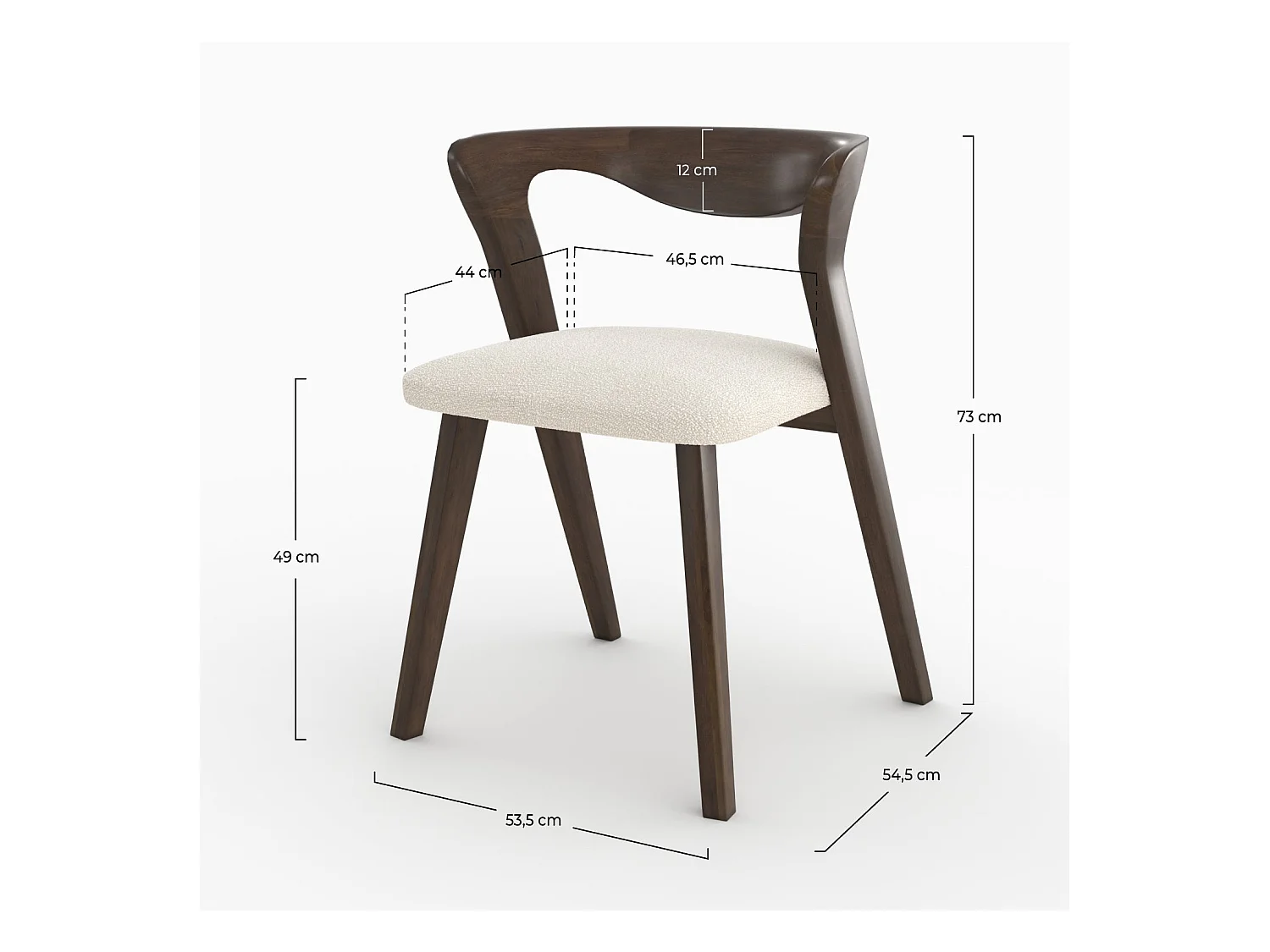 Chaise en bois d'hévéa foncé et tissu bouclé crème - Vega