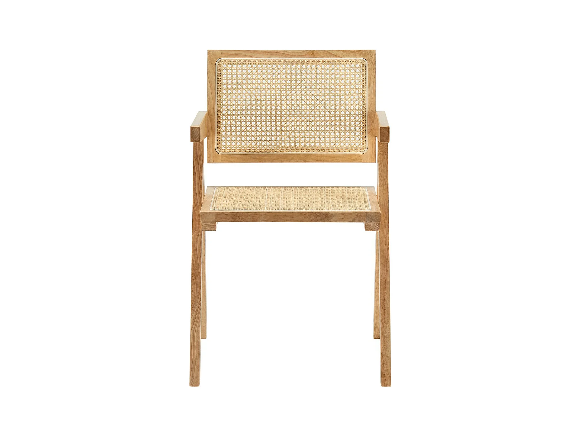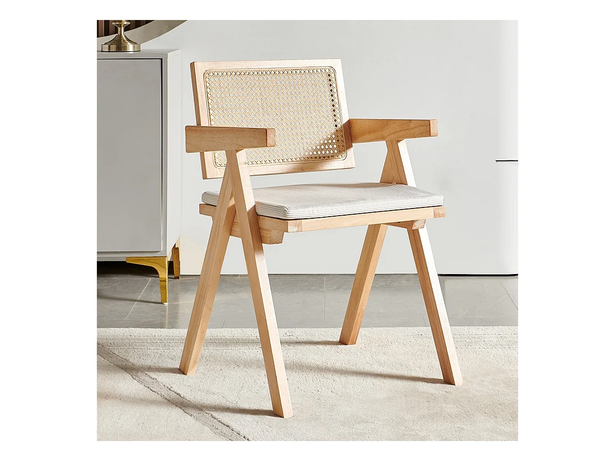 Chaise en bois massif, cannage naturel et velours côtelé beige - Lina
