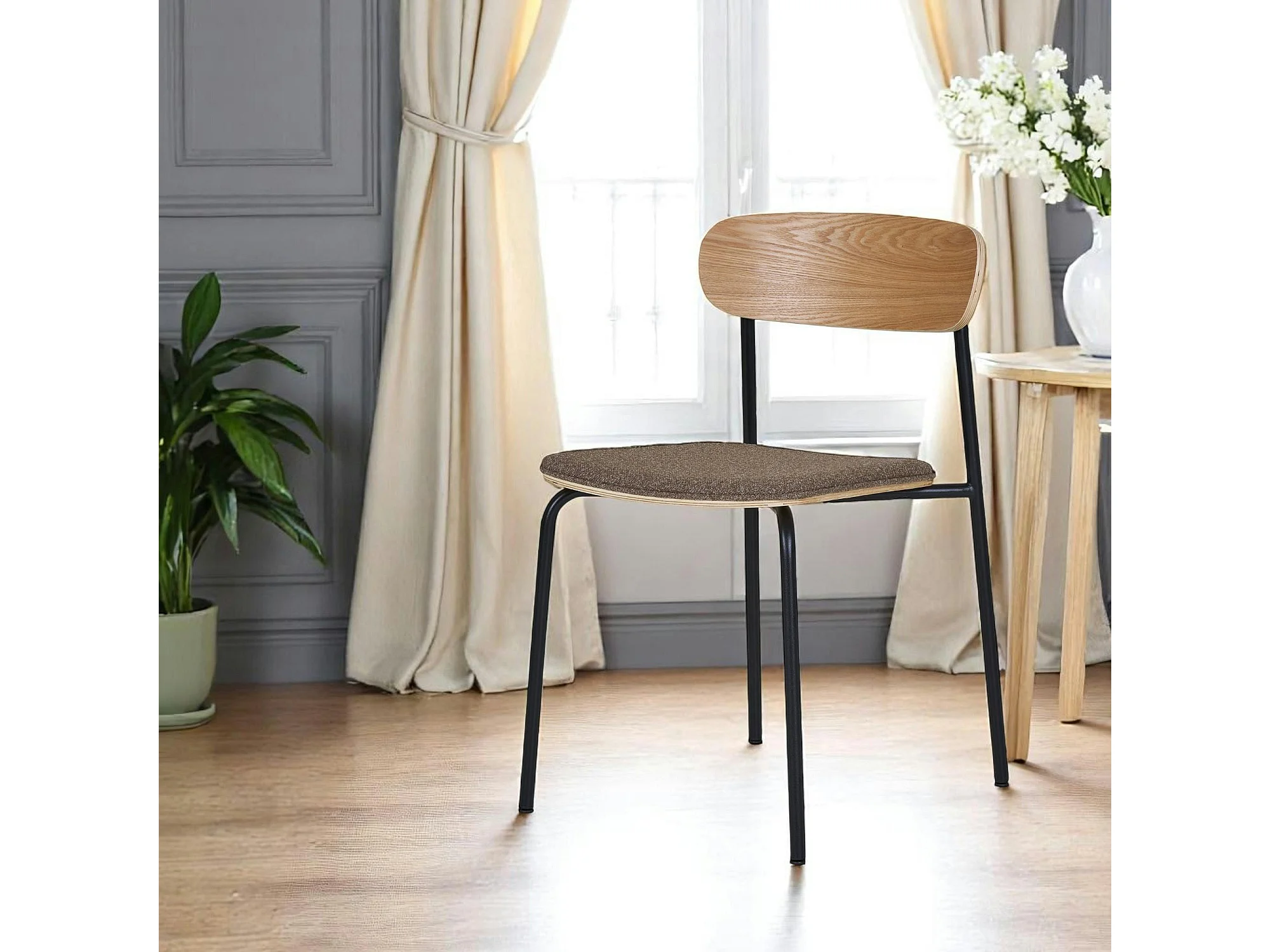 Chaise en bois style écolier avec assise tissu marron (lot de 2) BERLIN