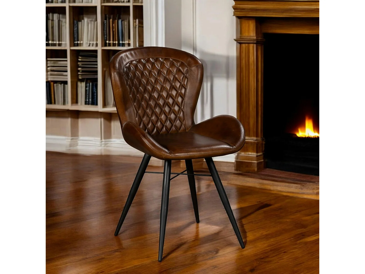 Chaise en cuir marron avec motif losange (lot de 2) MASSA