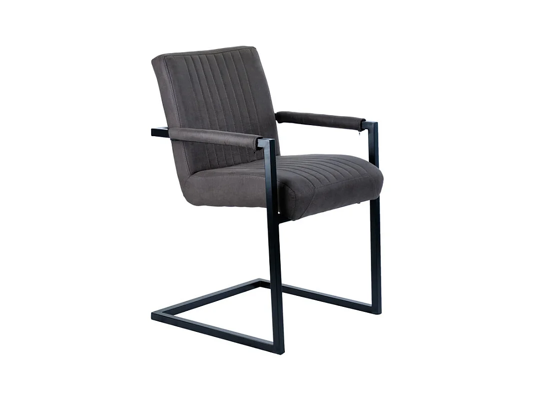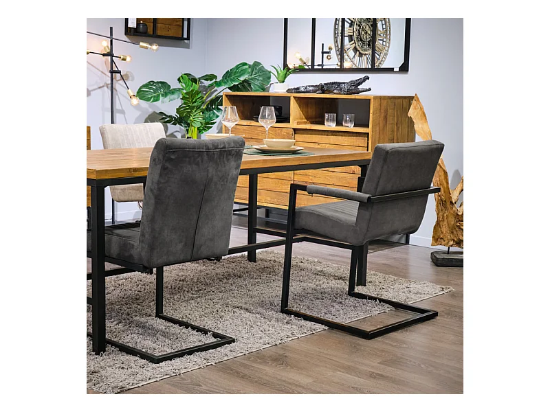 Chaise design en velours gris avec pied U en métal noir VIDAR