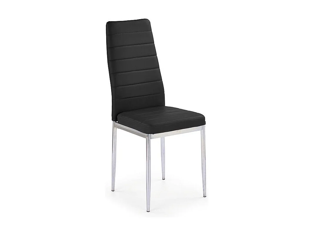 Chaise design en éco-cuir noir avec piètement chromé Carrie