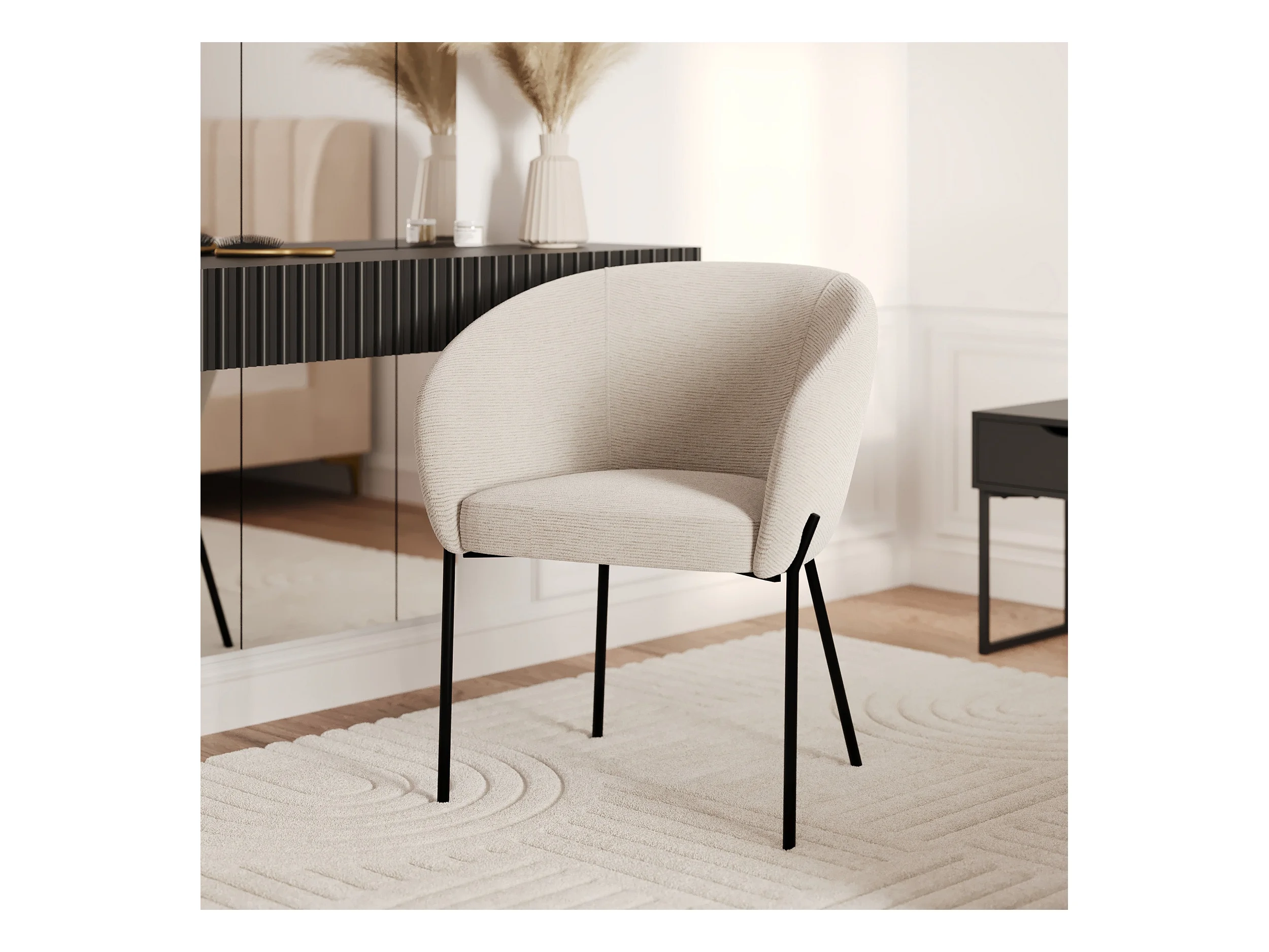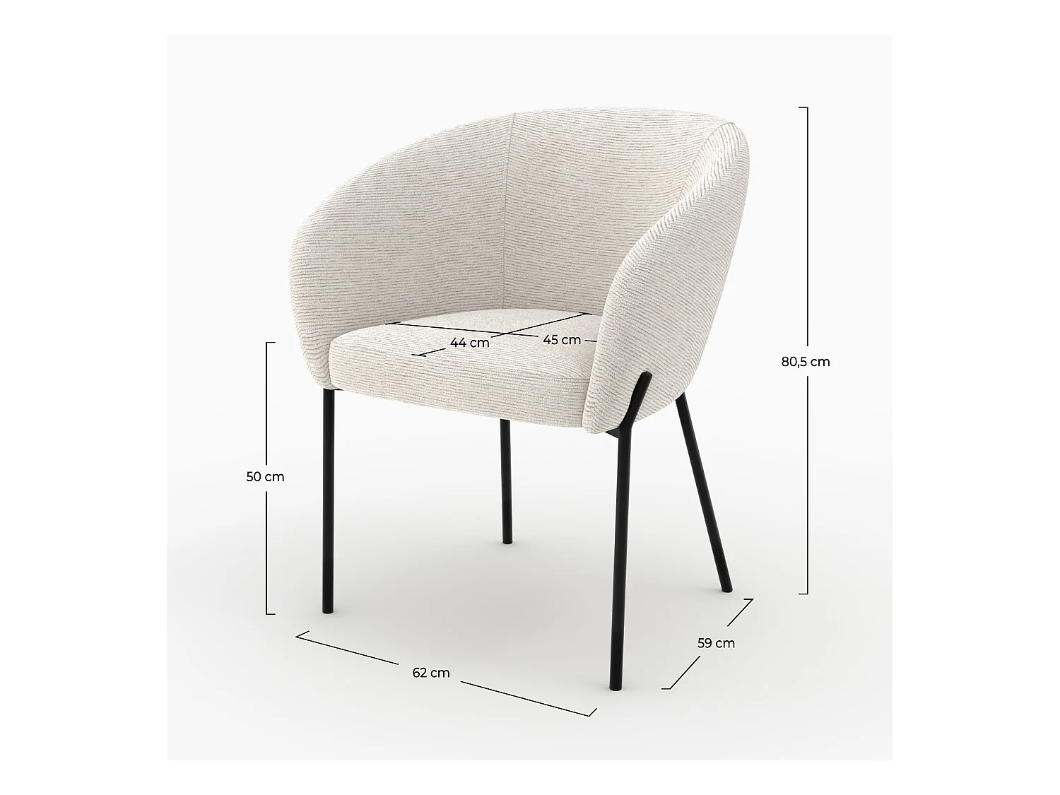 Fauteuil en tissu blanc chiné et pieds en métal noir - Socky