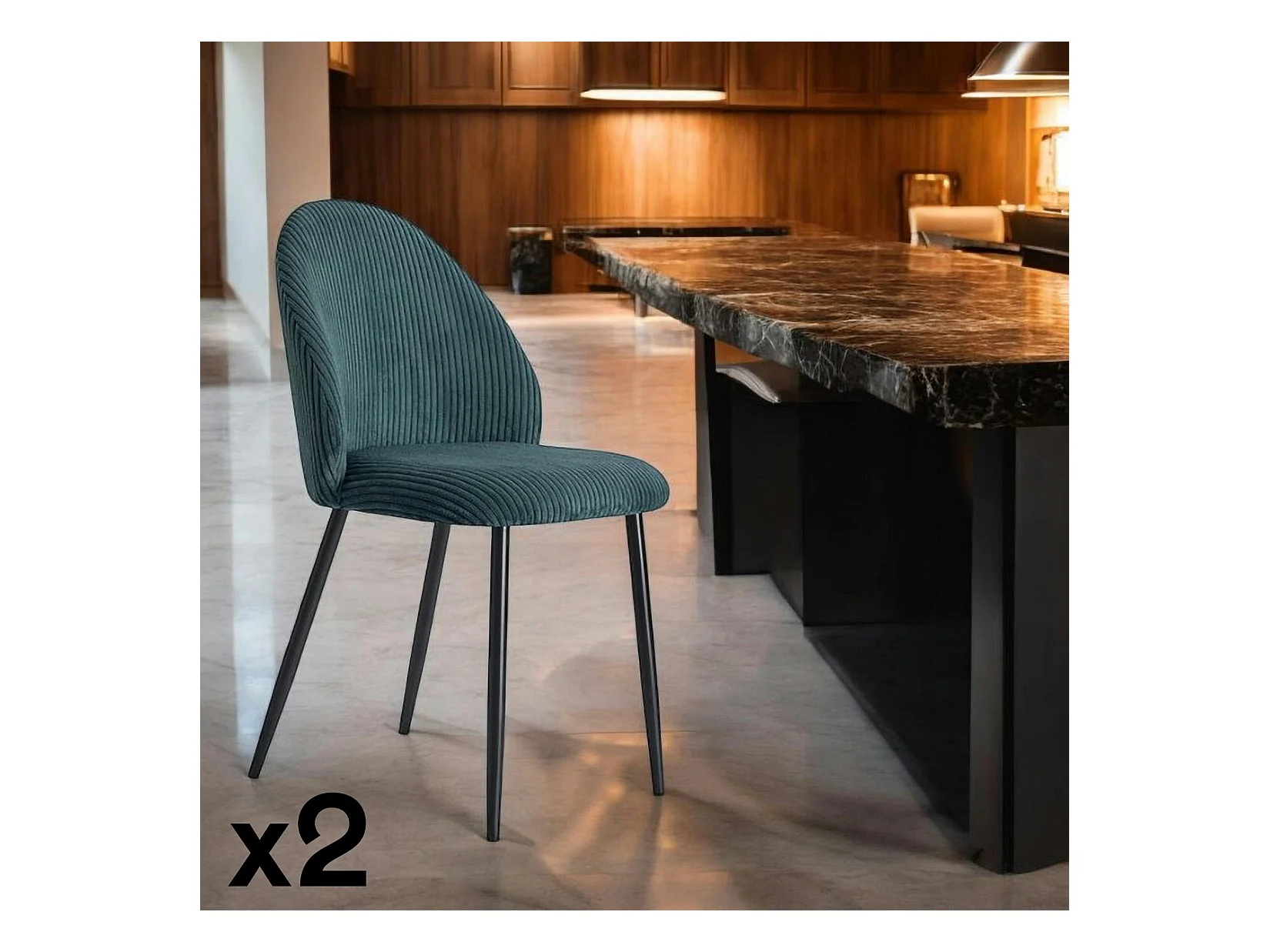 Chaise en tissu côtelé bleu pétrole (lot de 2) IENA
