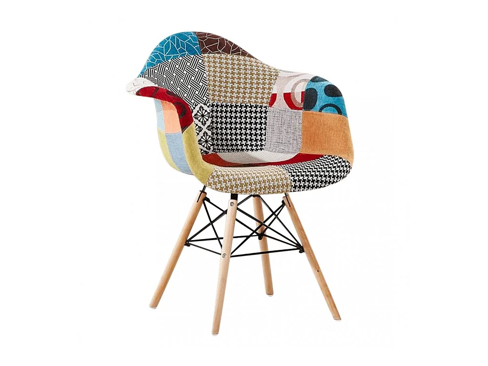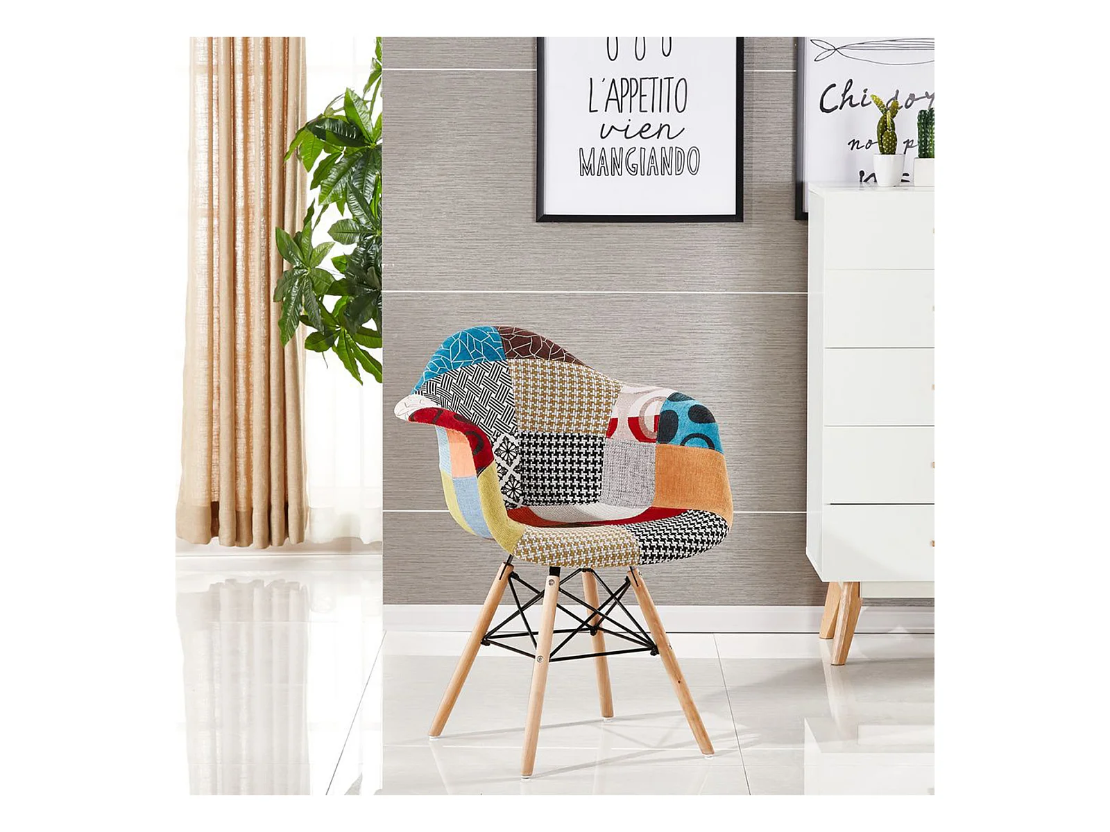 Chaise en Tissu Patchwork avec Accoudoirs - Pieds Eiffel - Multicolore