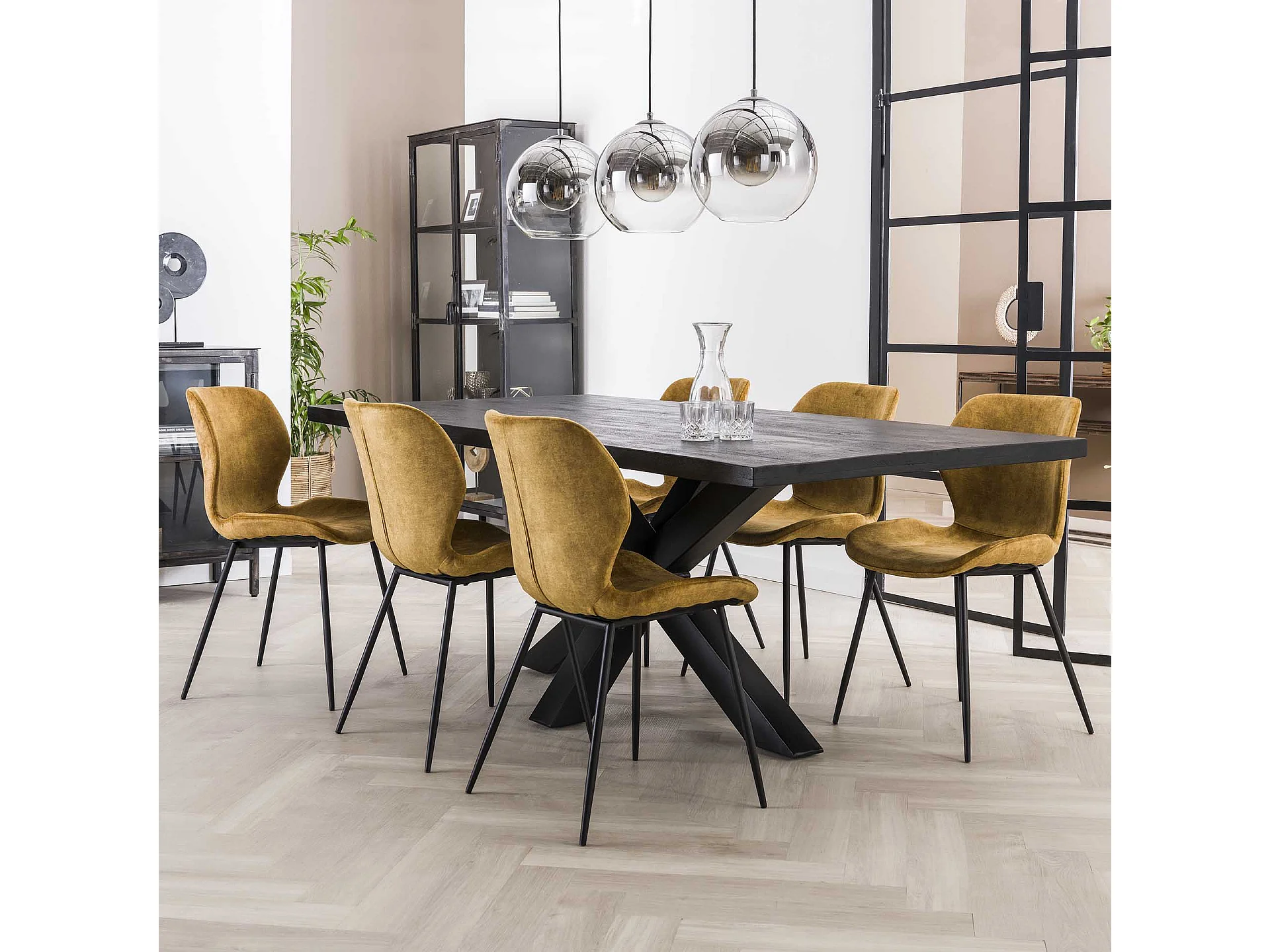 Chaise en velours - Assise coquille - Couleur or - Lot de 4