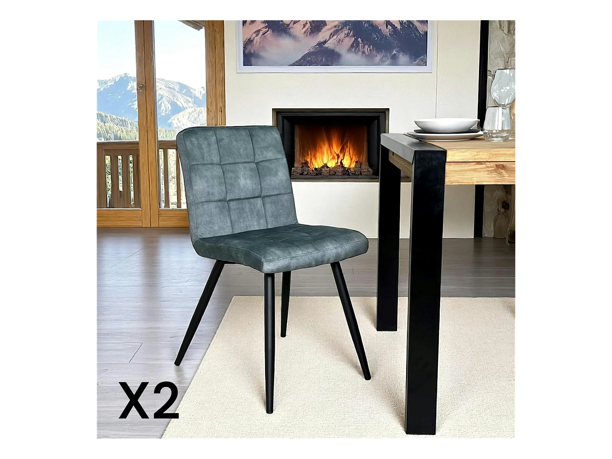 Chaise en velours capitonné bleu pétrole MALMOE (lot de 2)