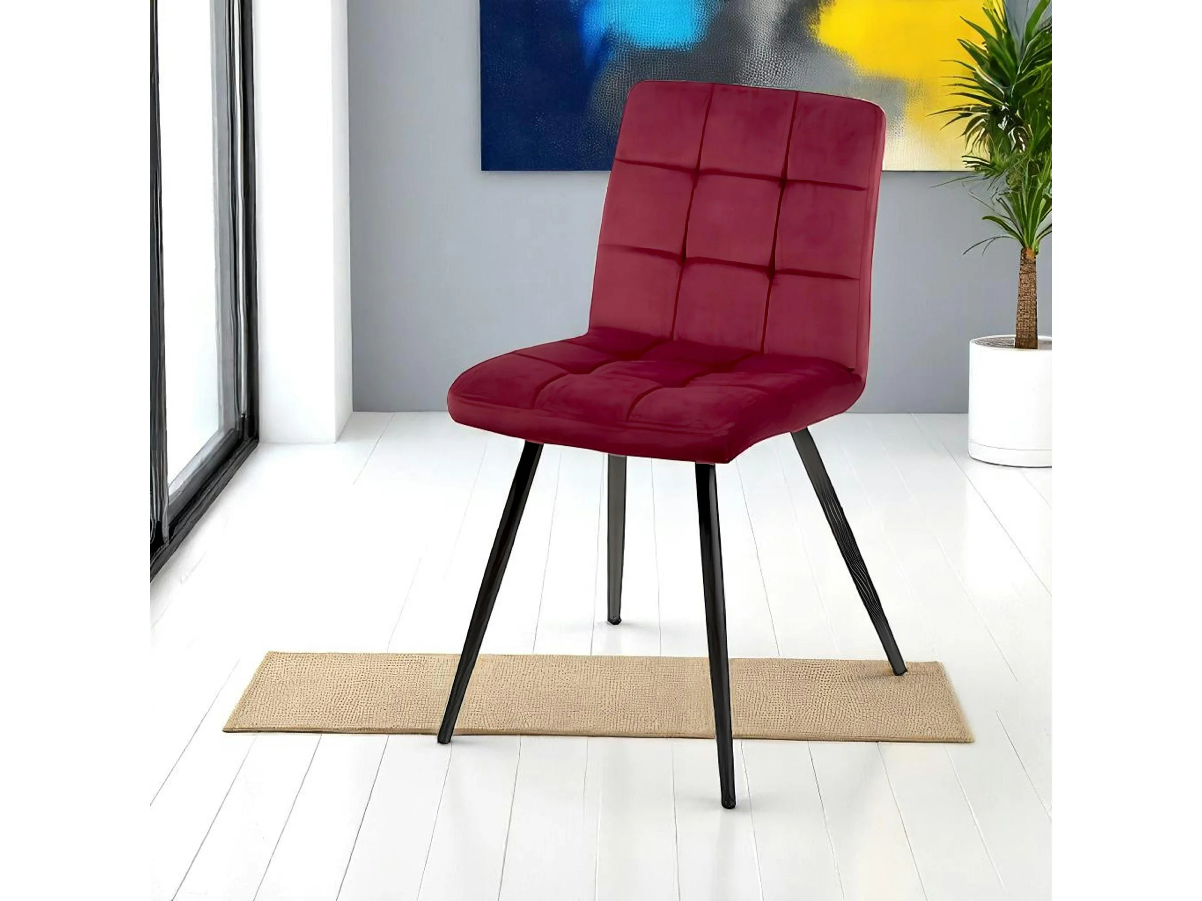 Chaise en velours capitonné rouge bordeaux MALMOE (lot de 2)