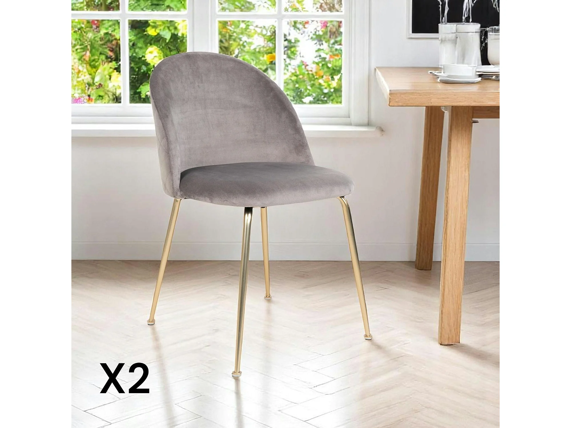 Chaise en velours gris à dossier rond (lot de 2) MONTREUX