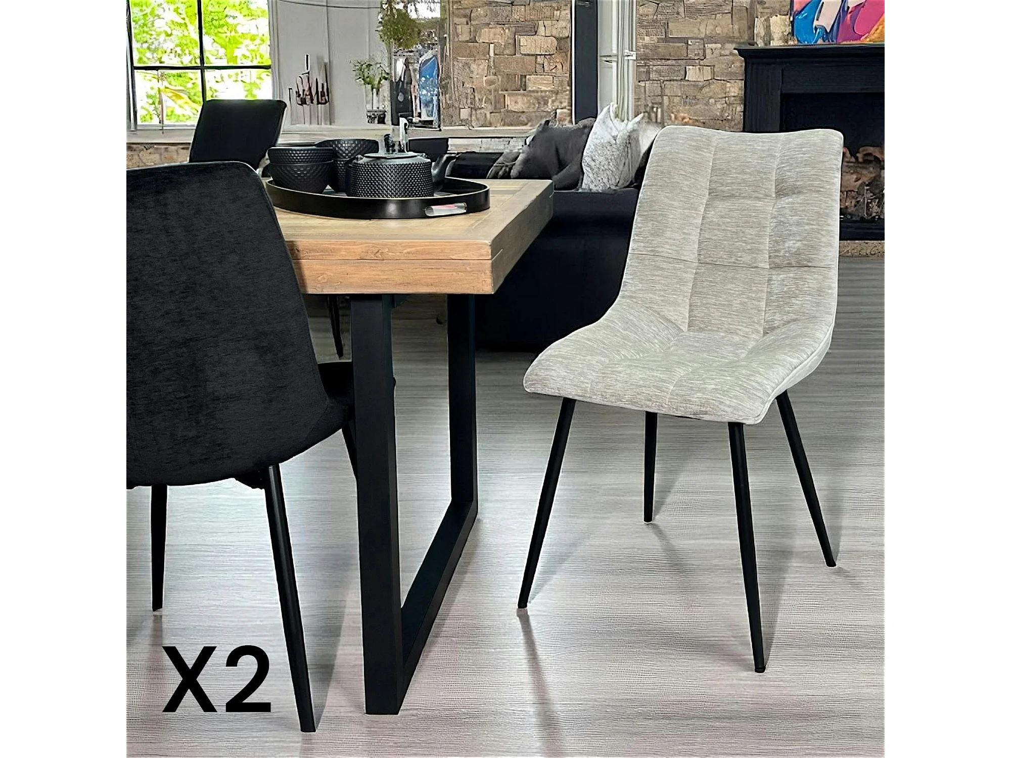 Chaise en velours gris clair motif damier (lot de 2) PALERME
