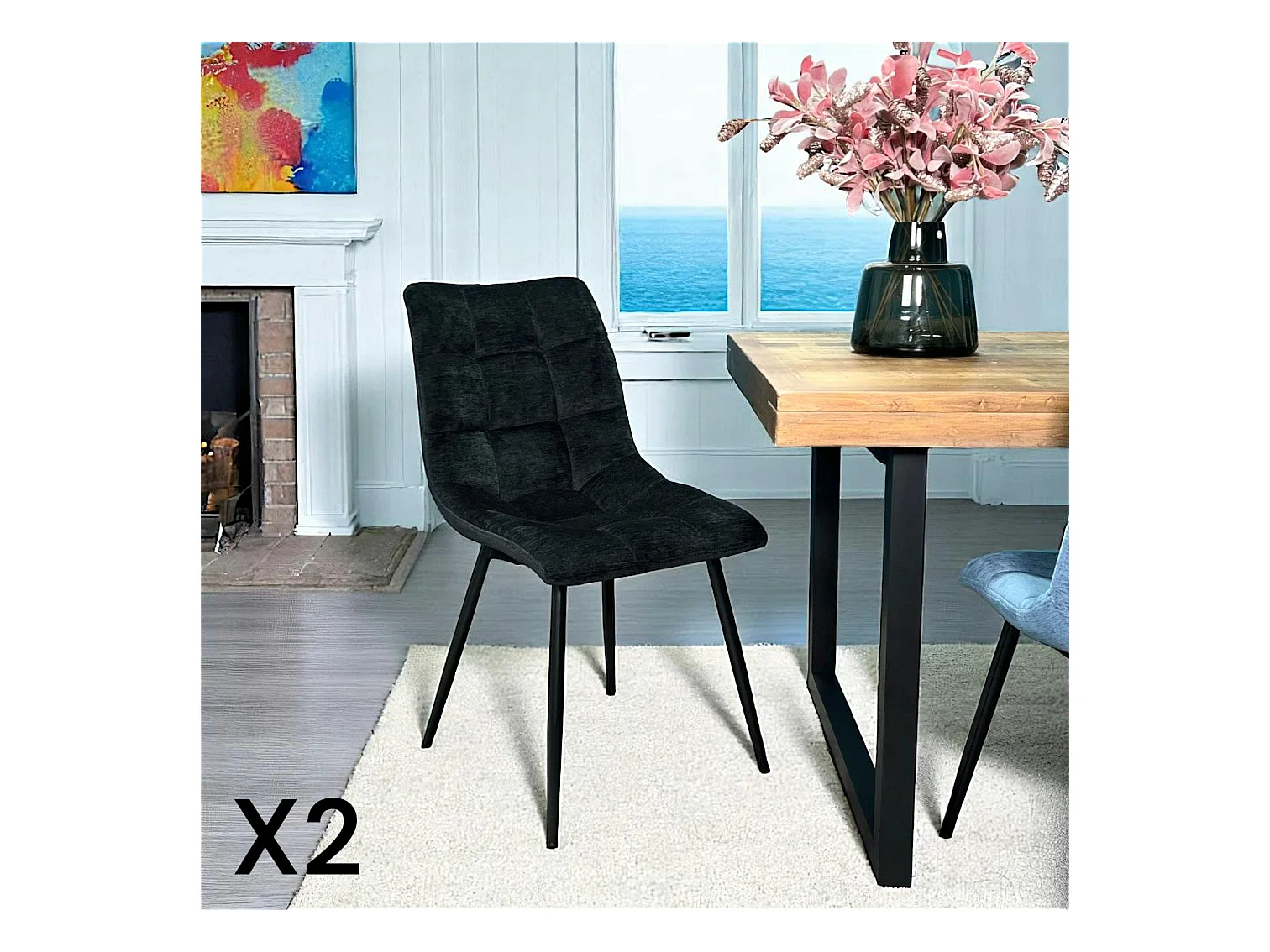 Chaise en velours noir motif damier (lot de 2) PALERME