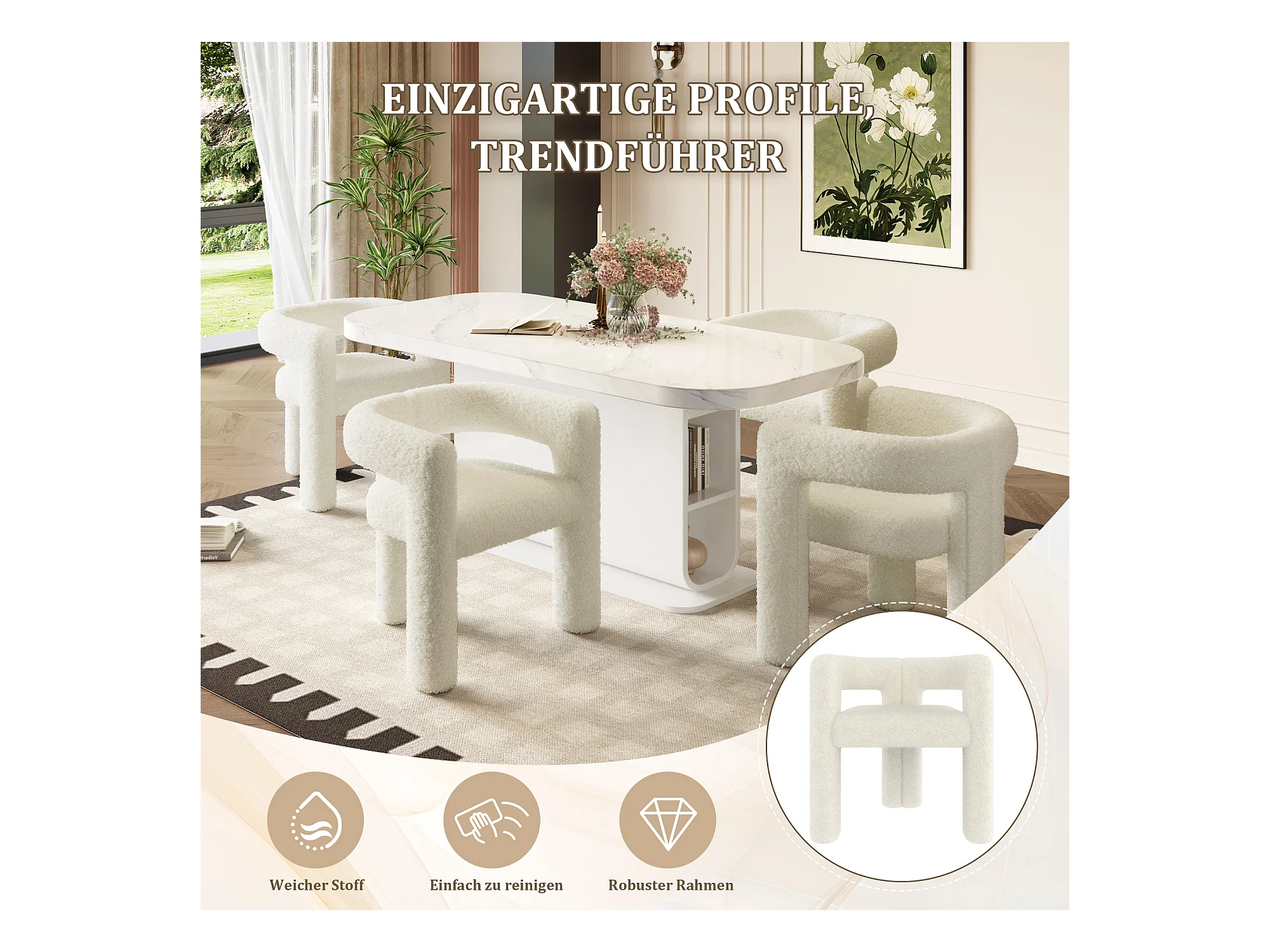 Chaise en velours Teddy beige - style patchwork - idéale pour café, salon ou repas en famille