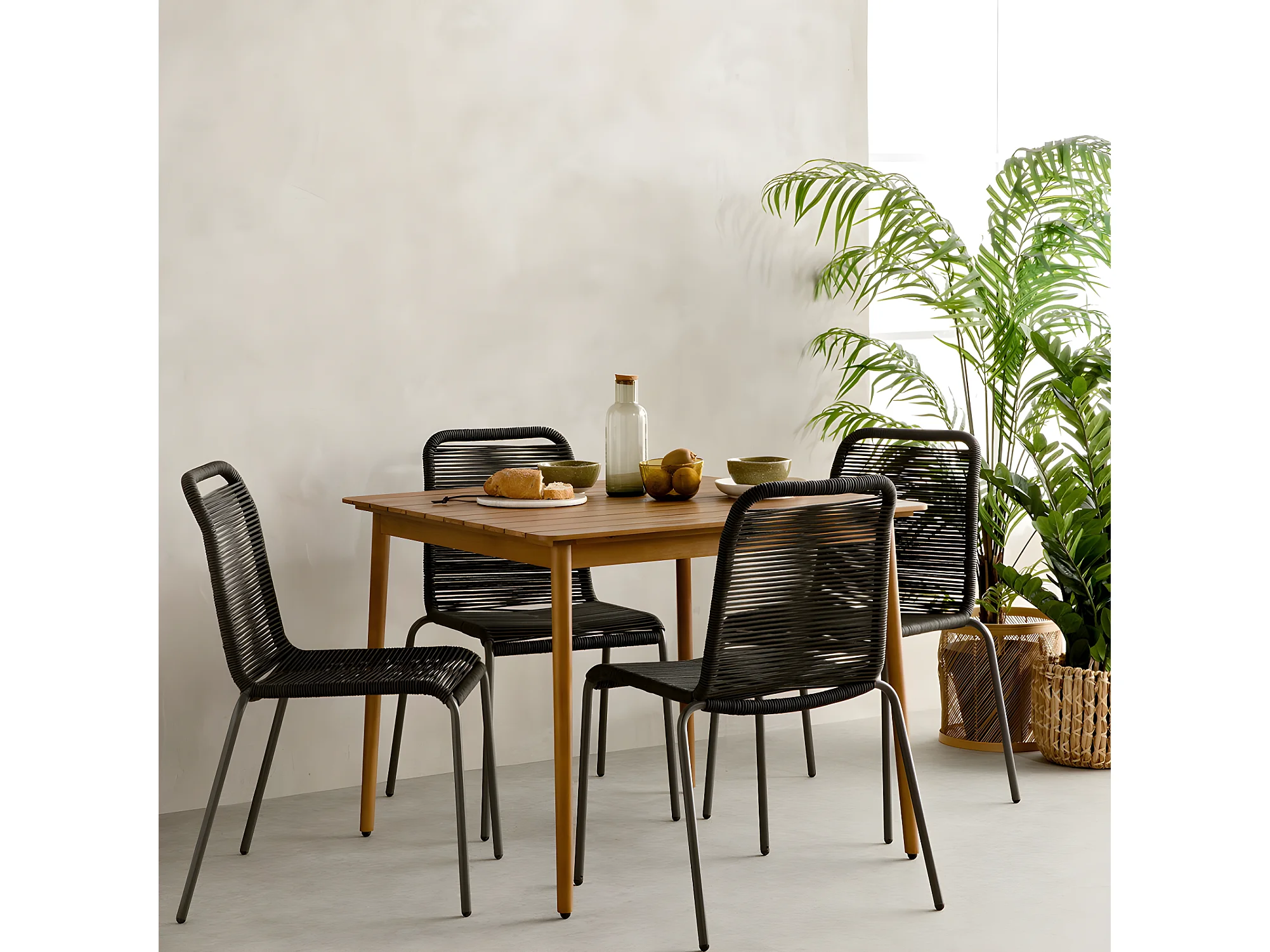 4xLamira Chaise de jardin, position assise, noir et accoudoirs en teck.