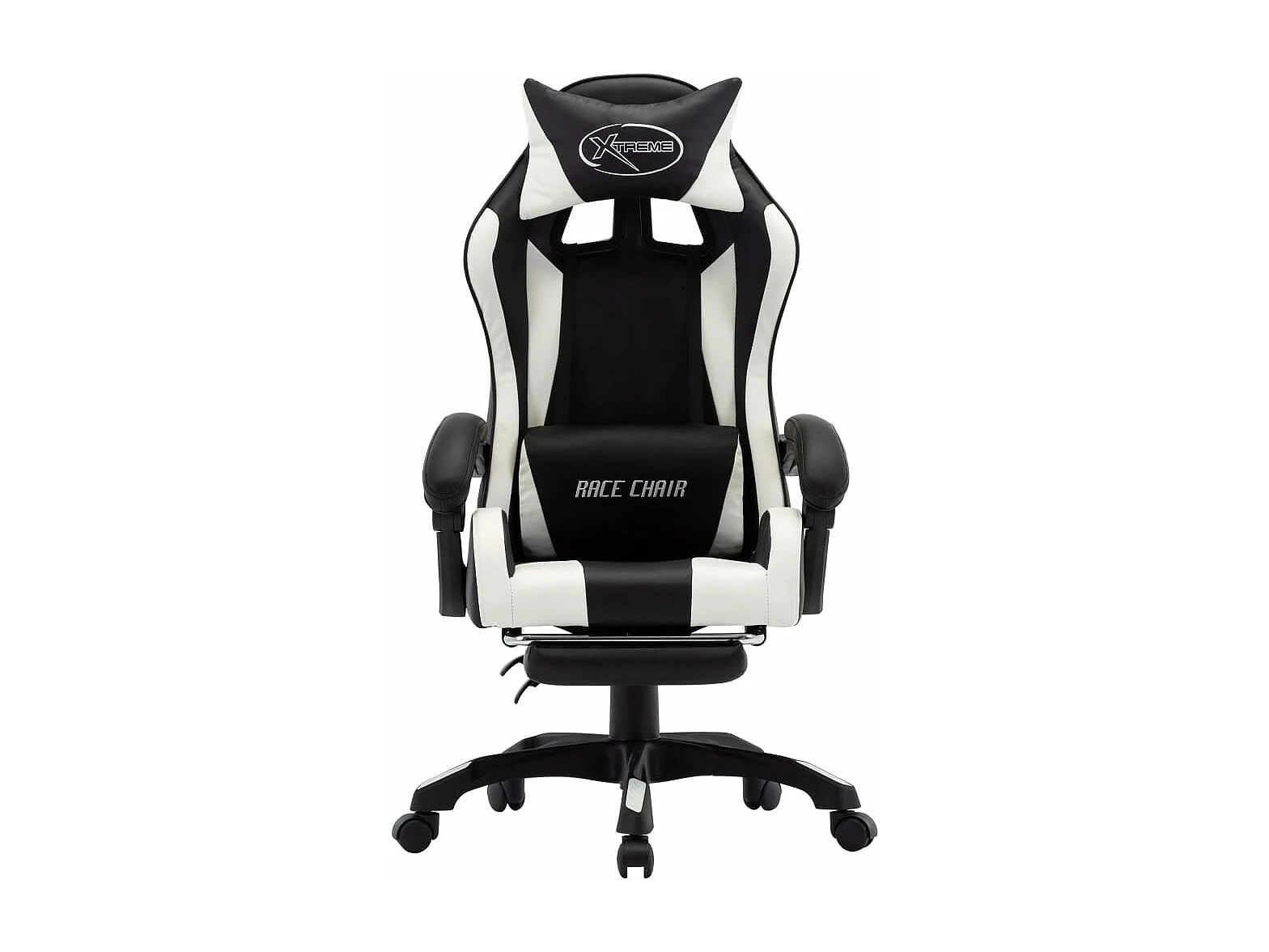 Chaise gamer et repose-pied Blanc et noir Similicuir REO35981