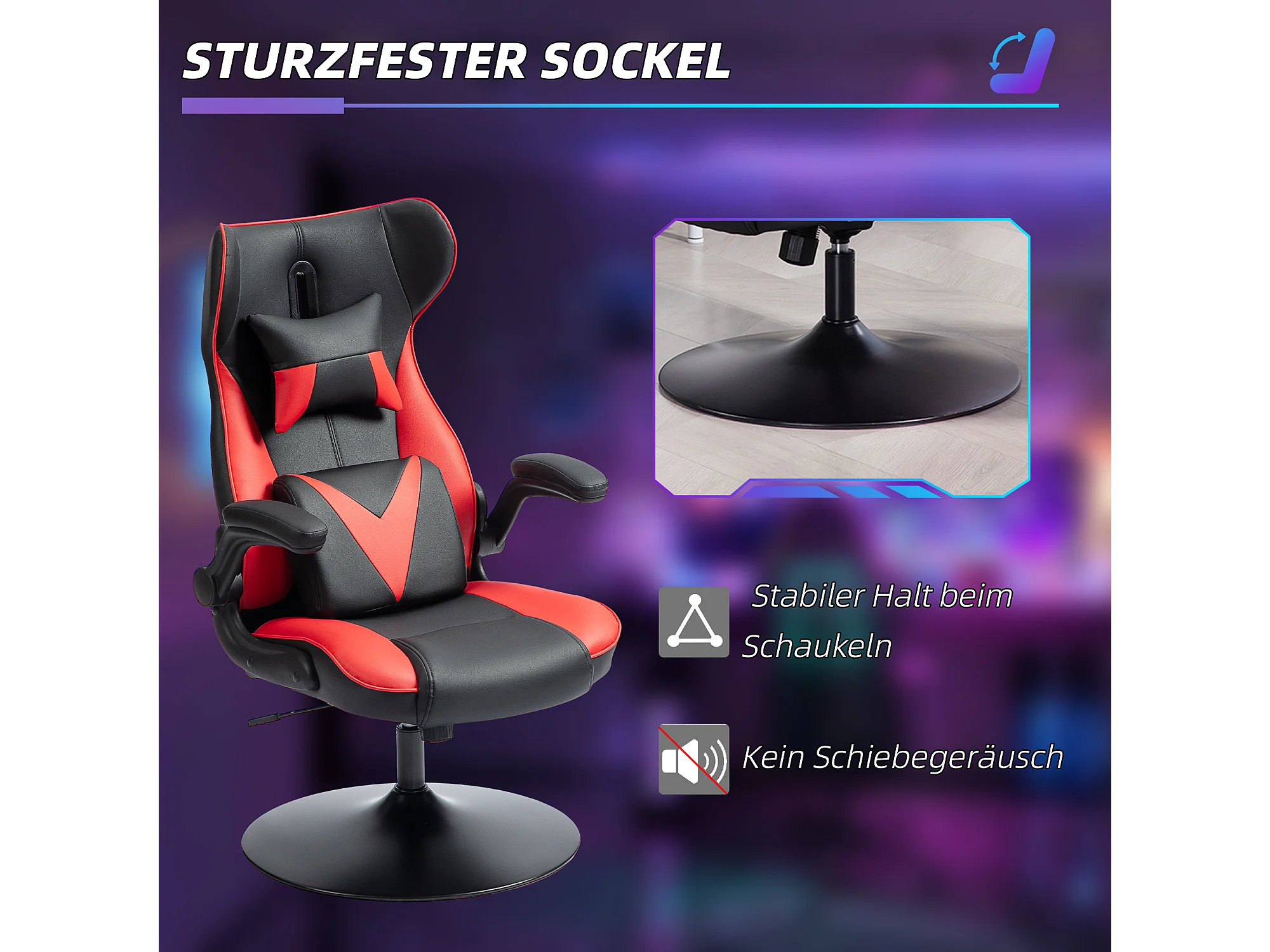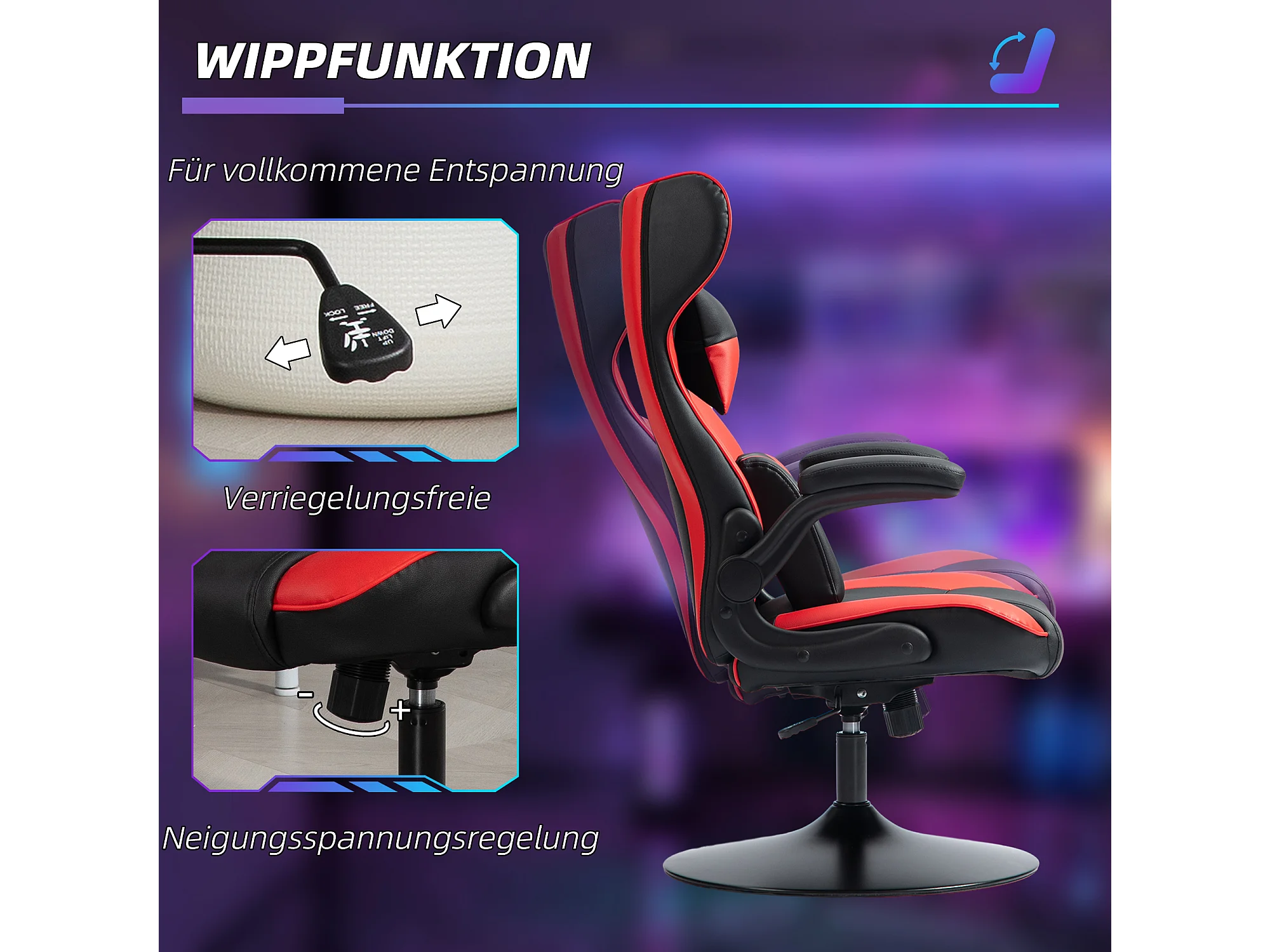 Chaise gaming avec fonction bascule, ergonomique, ajustable, plastique, noir+rouge (67x71x112 cm)