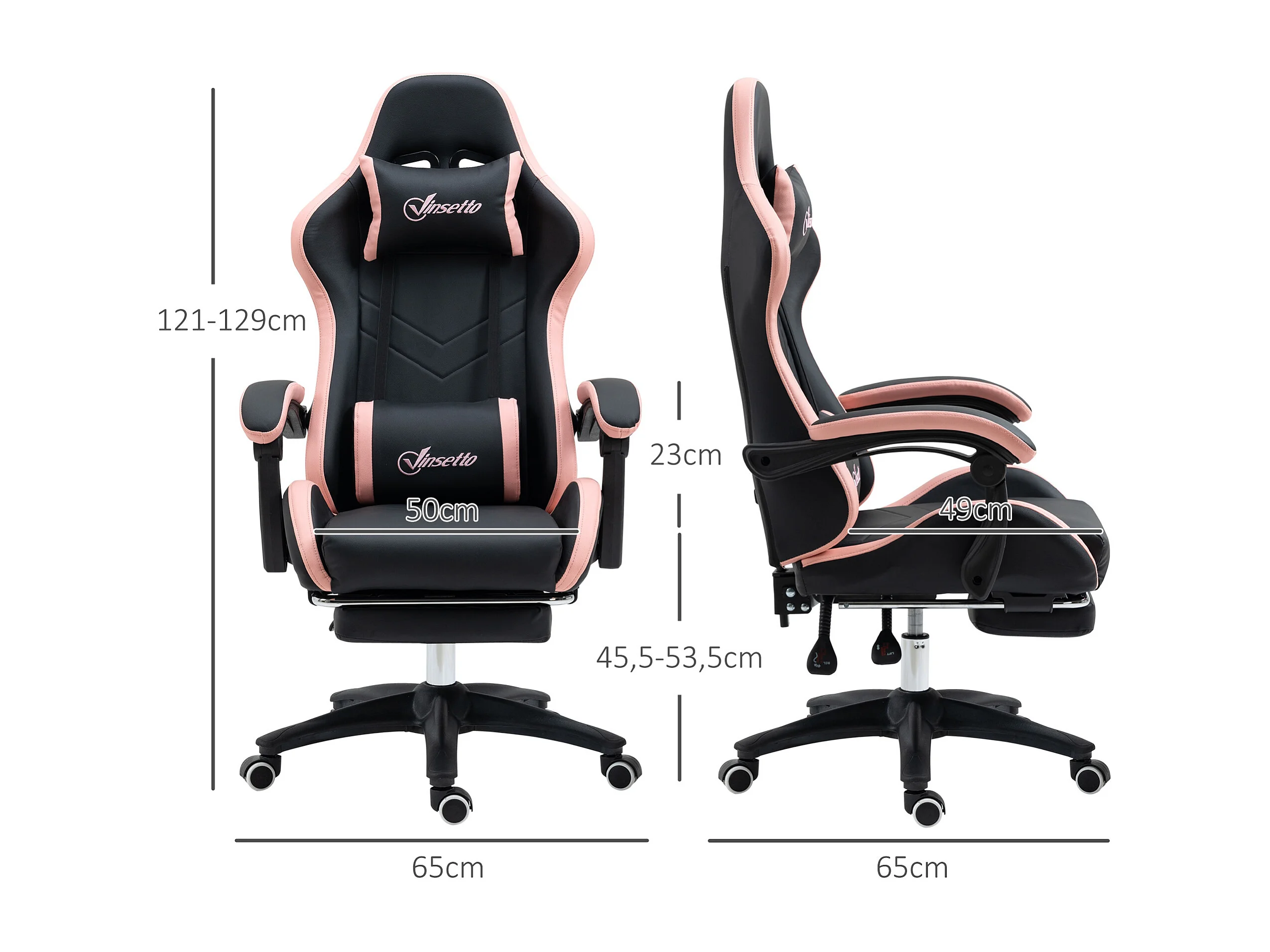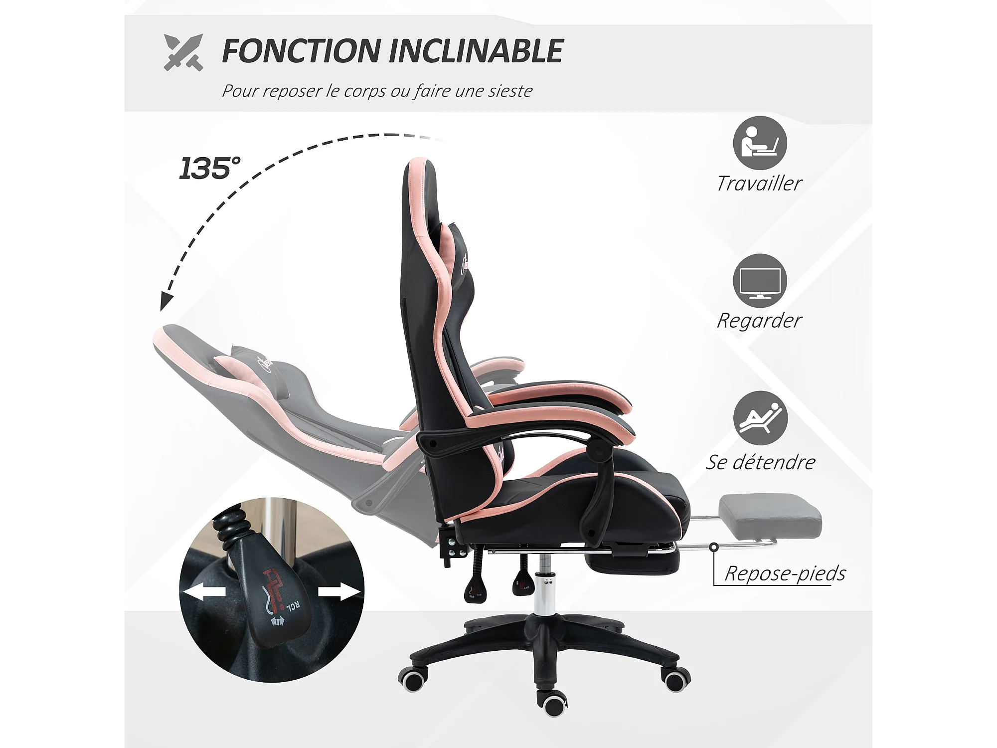 Chaise gaming - chaise de bureau gamer inclinable réglable repose-pieds rétractable coussins synthétique noir rose