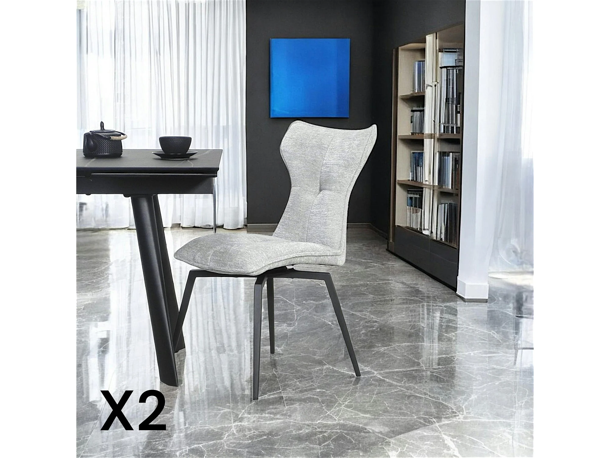 Chaise grise pivotante en velours avec passepoil (lot de 2) LOMBARDIE