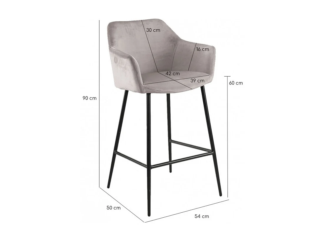 Chaise haute de bar en velours marron et piétement métal noir - CHIC