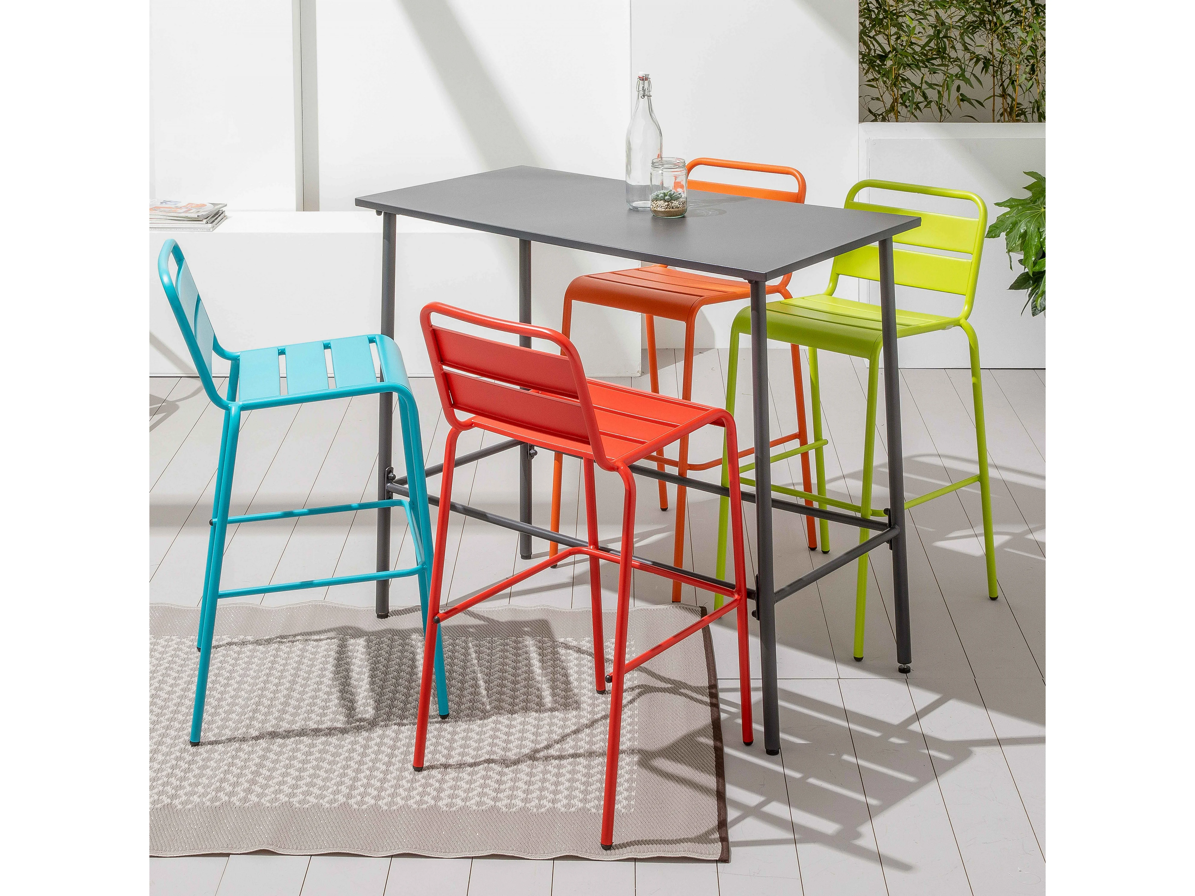 Chaise haute de jardin en métal bleu - Palavas