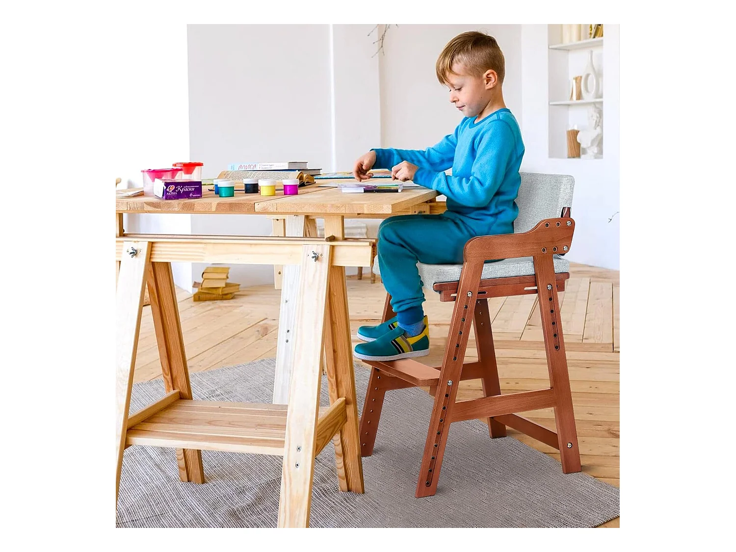 Chaise Haute en Bois, 6 Hauteurs Réglables Stable Chaise Supporte 90KG pour Bébés, Enfants et Adultes bois de hêtre (Noyer)