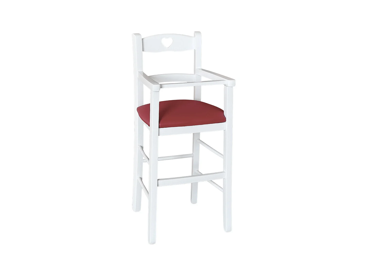 Chaise haute en bois blanc avec assise en éco-cuir rouge