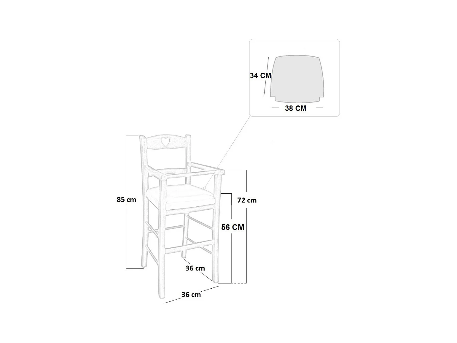 Chaise haute en bois blanc avec assise en éco-cuir marron