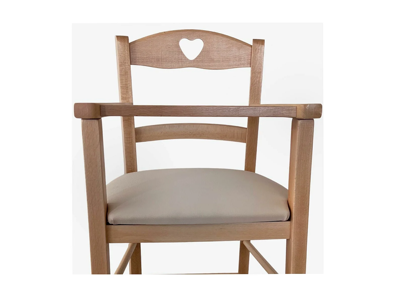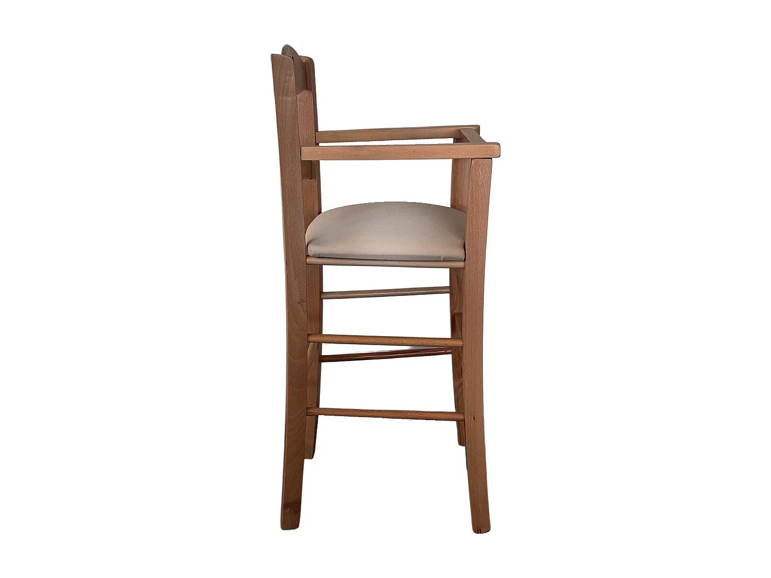 Chaise haute en bois naturel avec assise rembourrée en simili cuir beige/crème