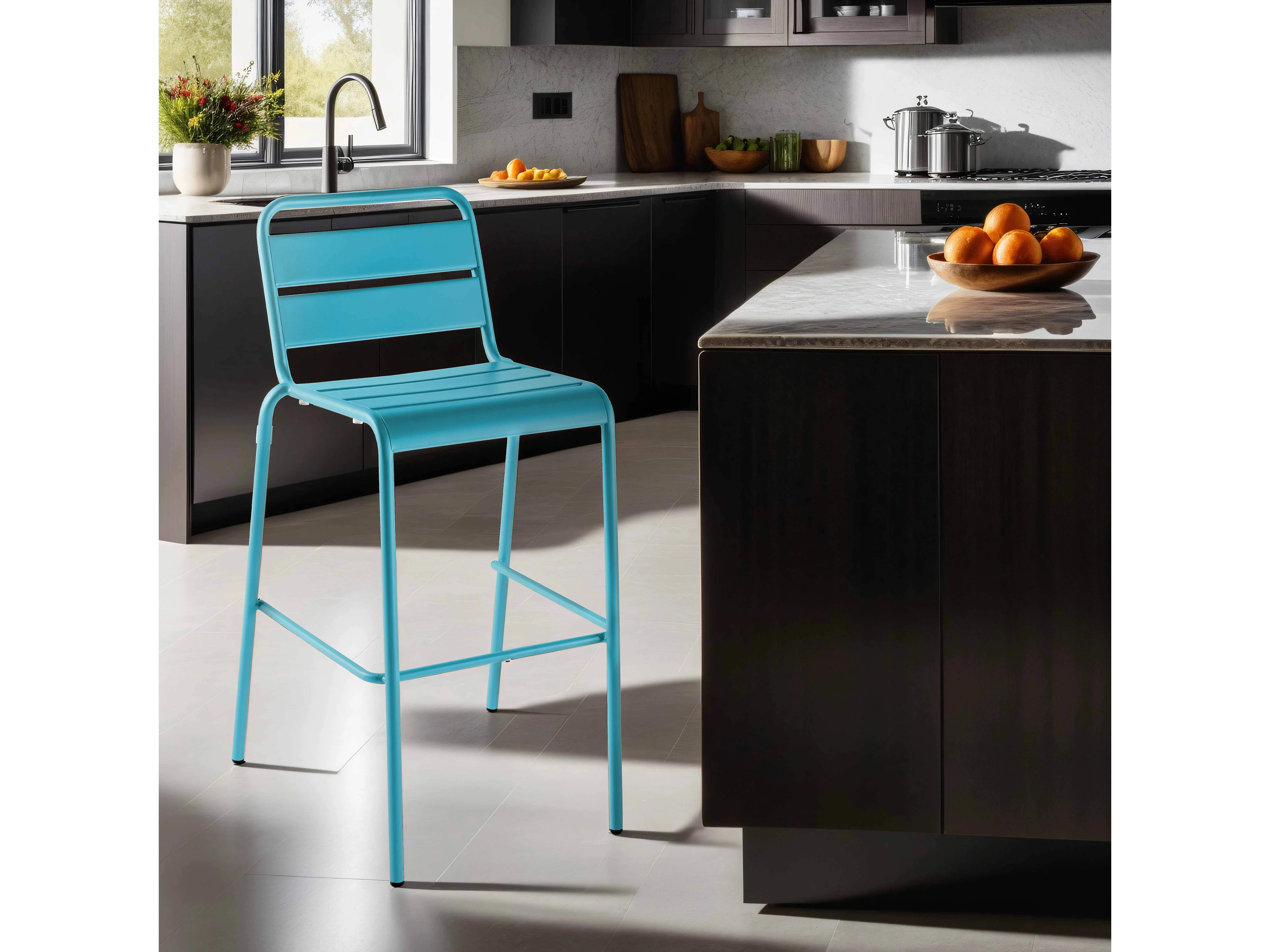 Lot de 2 chaises hautes en métal et bois bleu clair