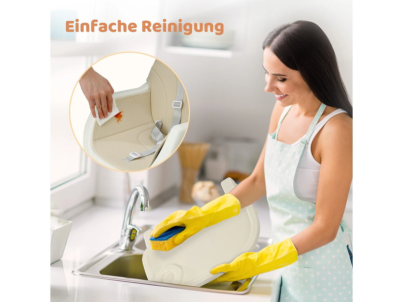Chaise Haute Bébé Evolutive Pliable 2 en 1 en PP Hauteur et Angle Réglables avec Assiette,Plateau de Jeu Charge 20KG Beige