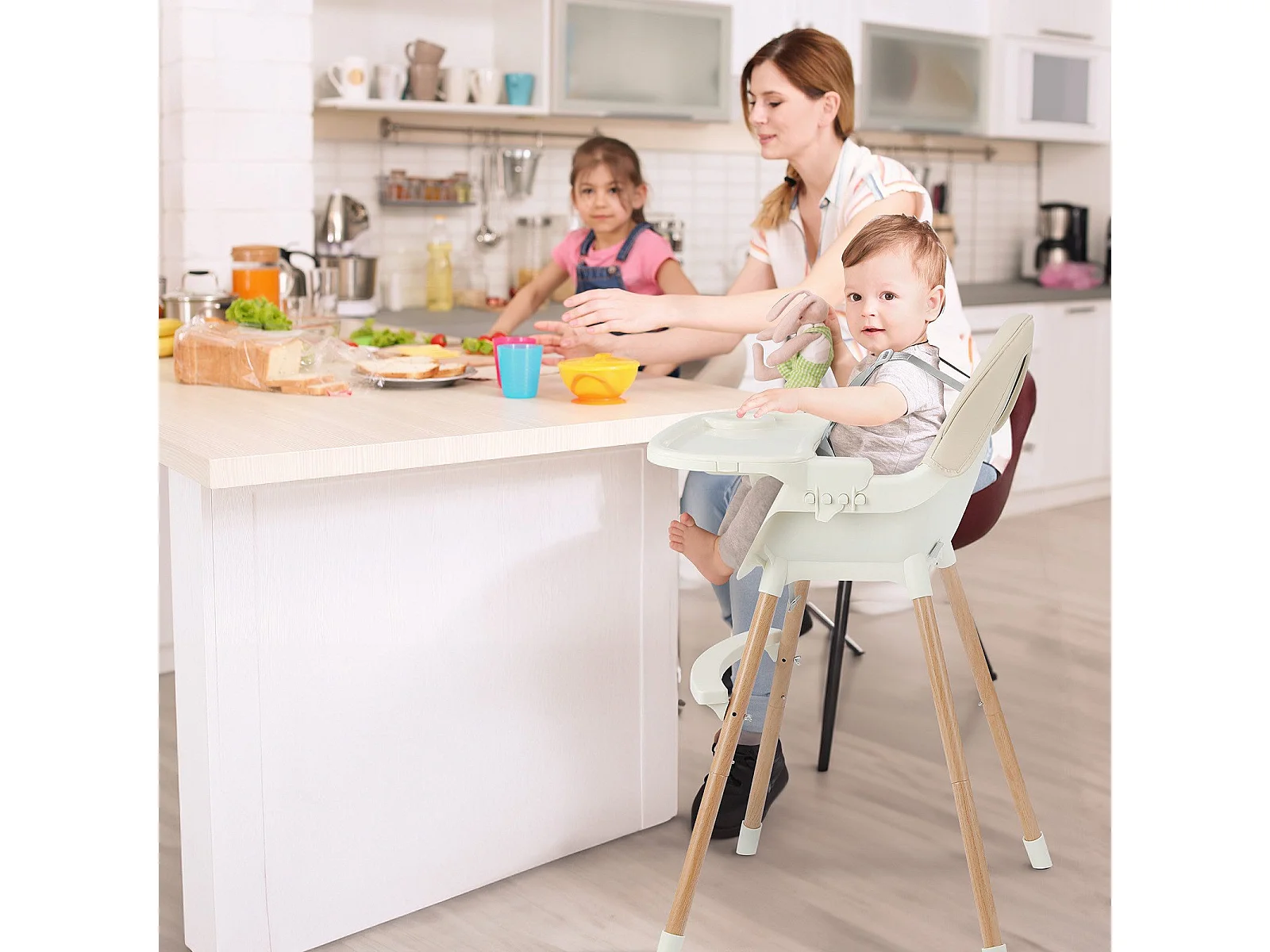 Chaise haute YOLEO avec pieds en bois, réglable en hauteur, chaise haute pliable pour enfants jusqu'à 3 ans, beige