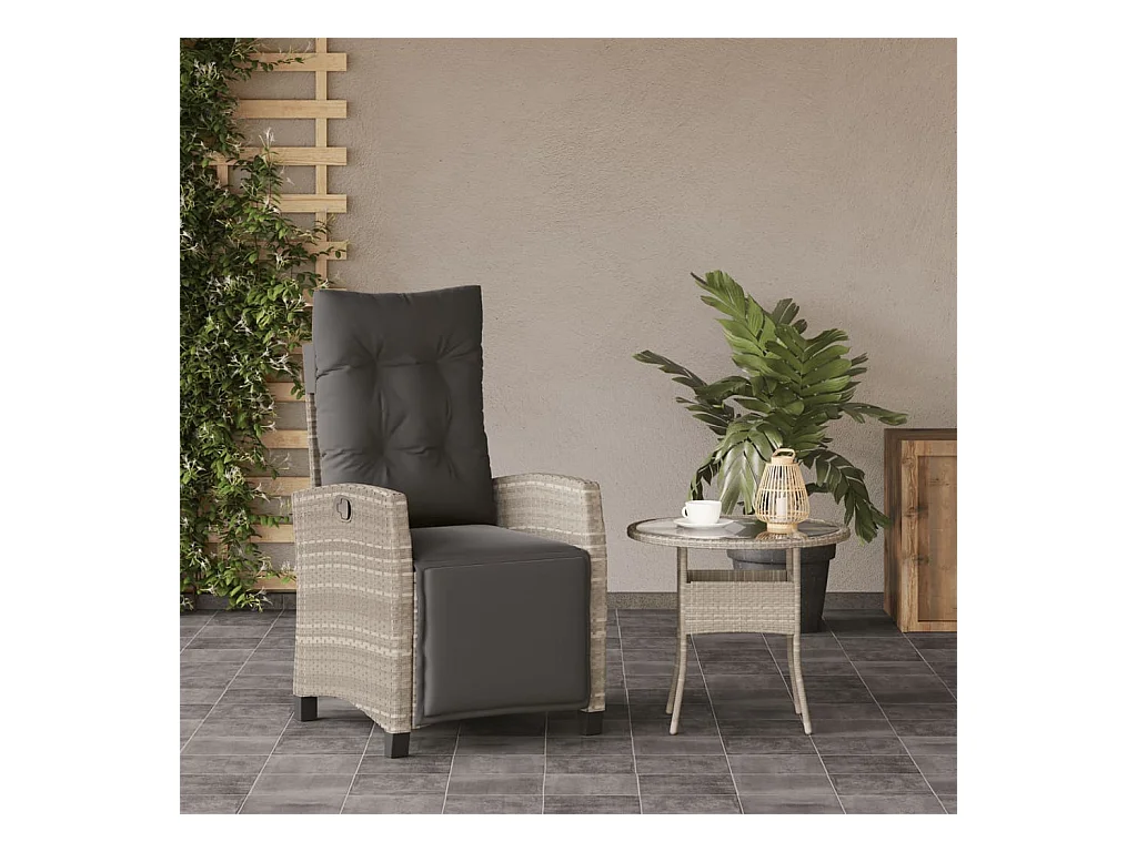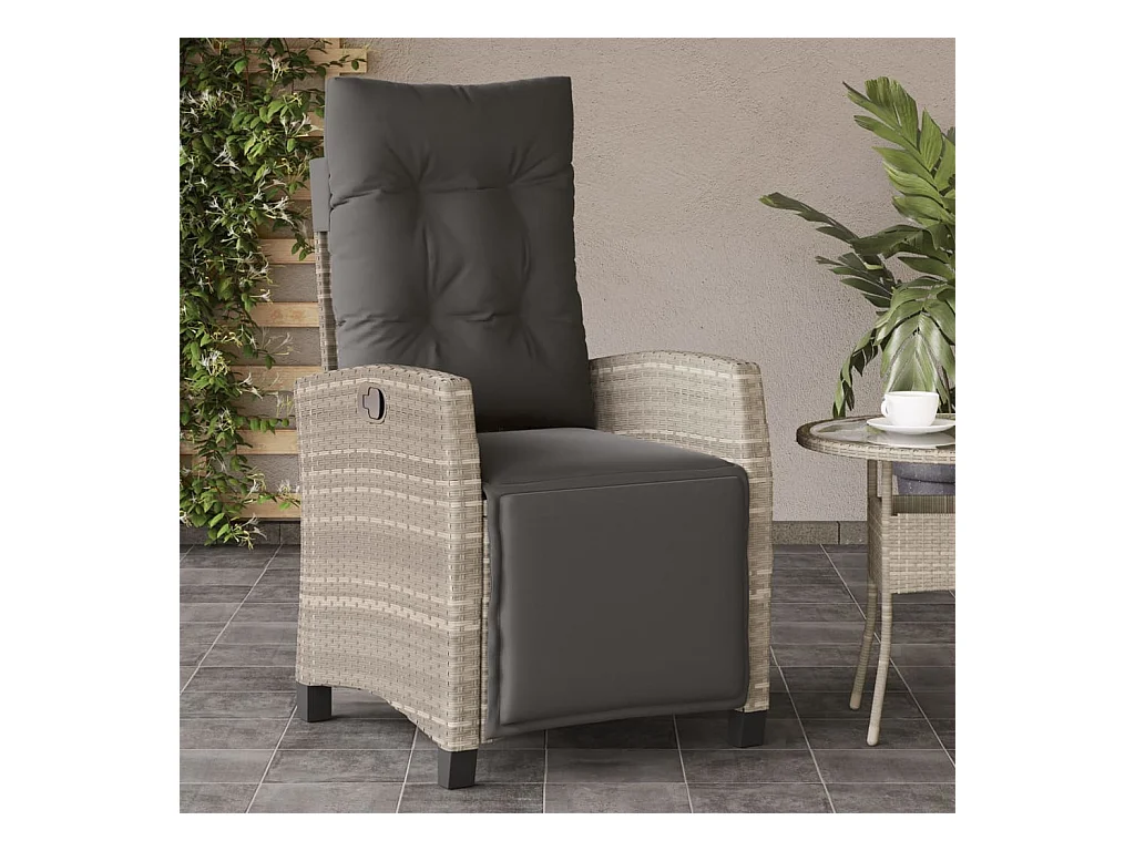 Chaise inclinable de jardin avec repose-pied gris clair rotin REO62909