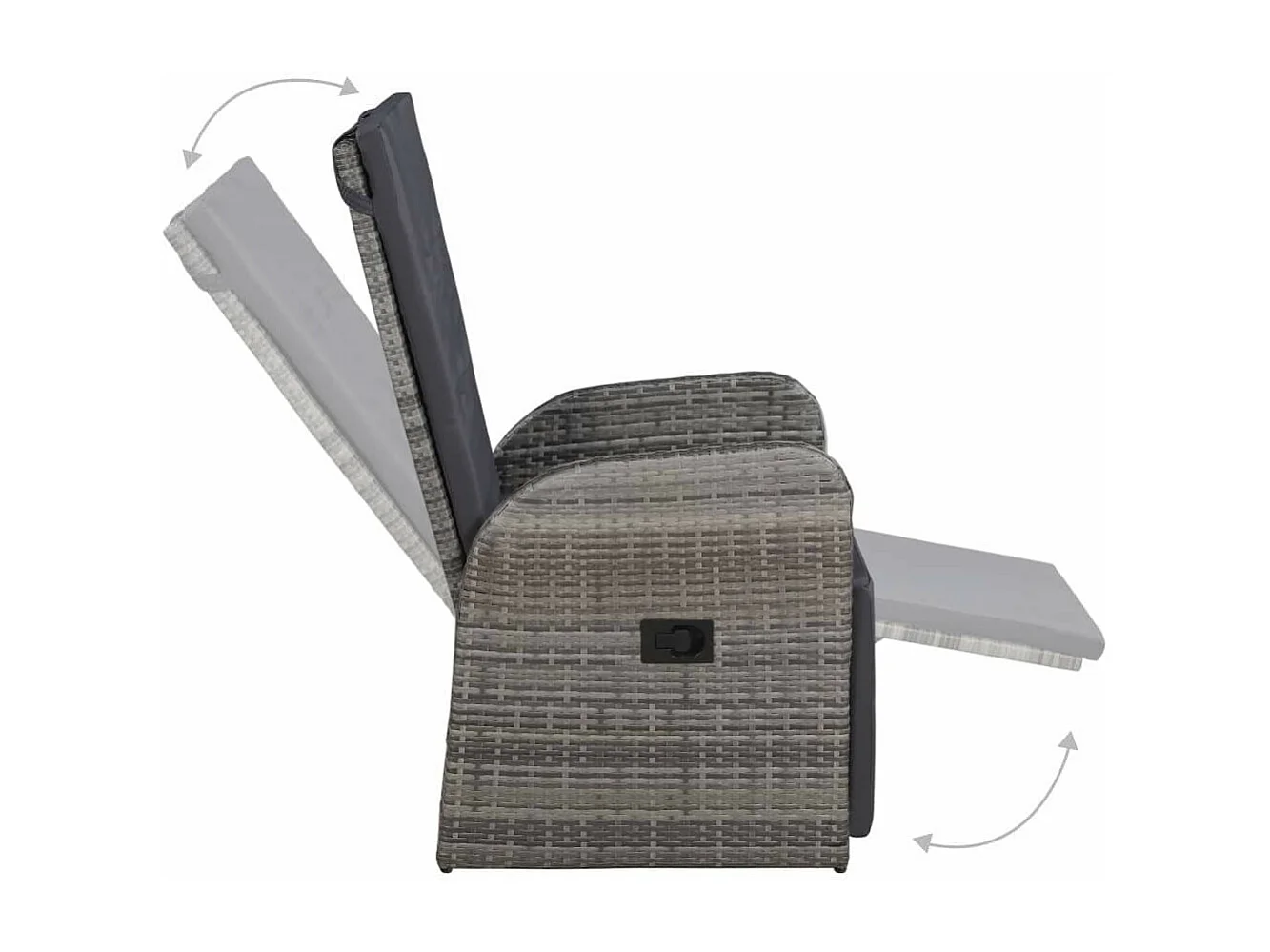 Chaise inclinable de jardin et coussin Résine tressée Gris