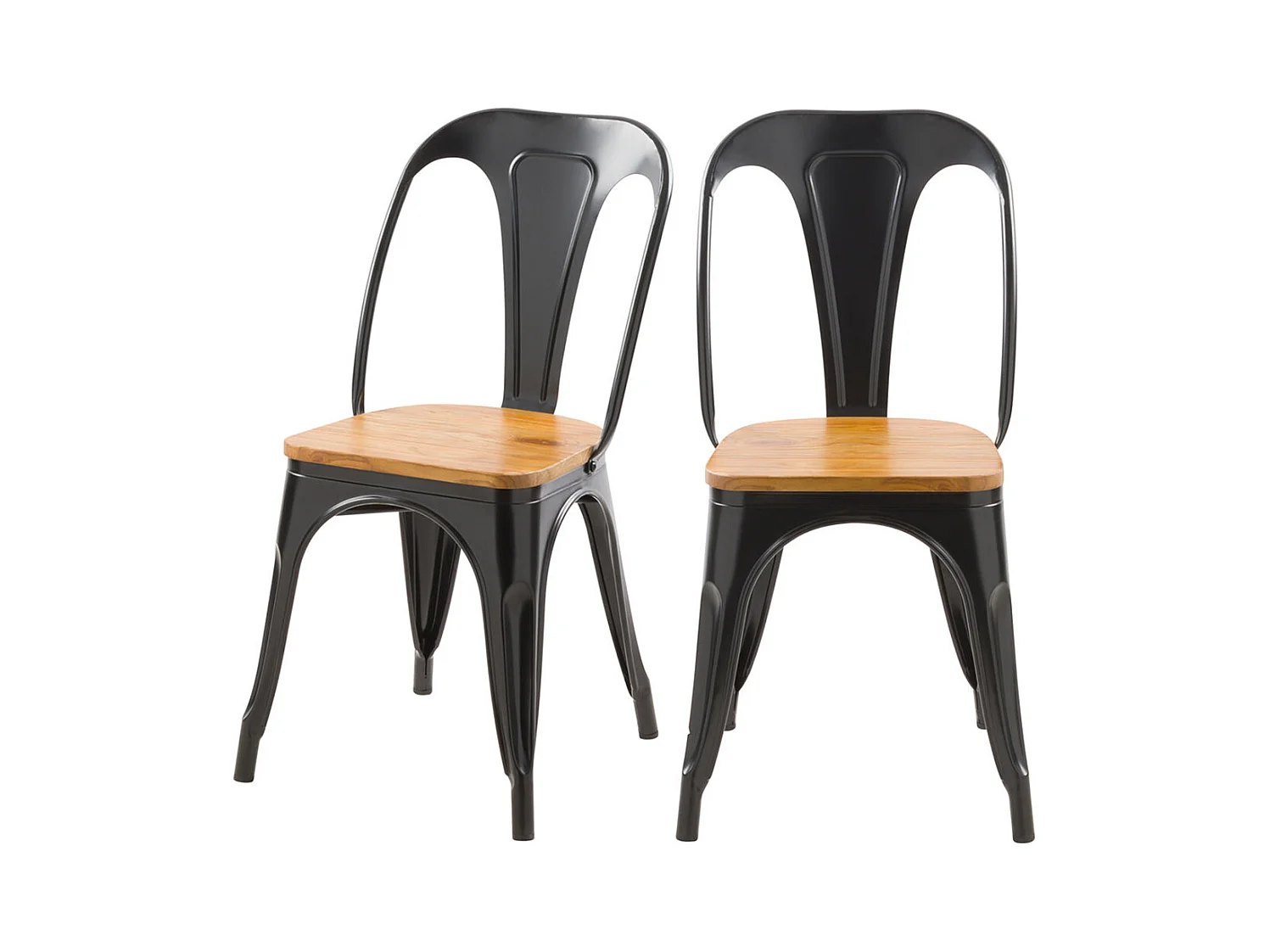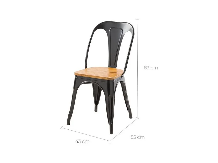 Lot de 2 chaises en métal noir et bois d'orme - Yoanna