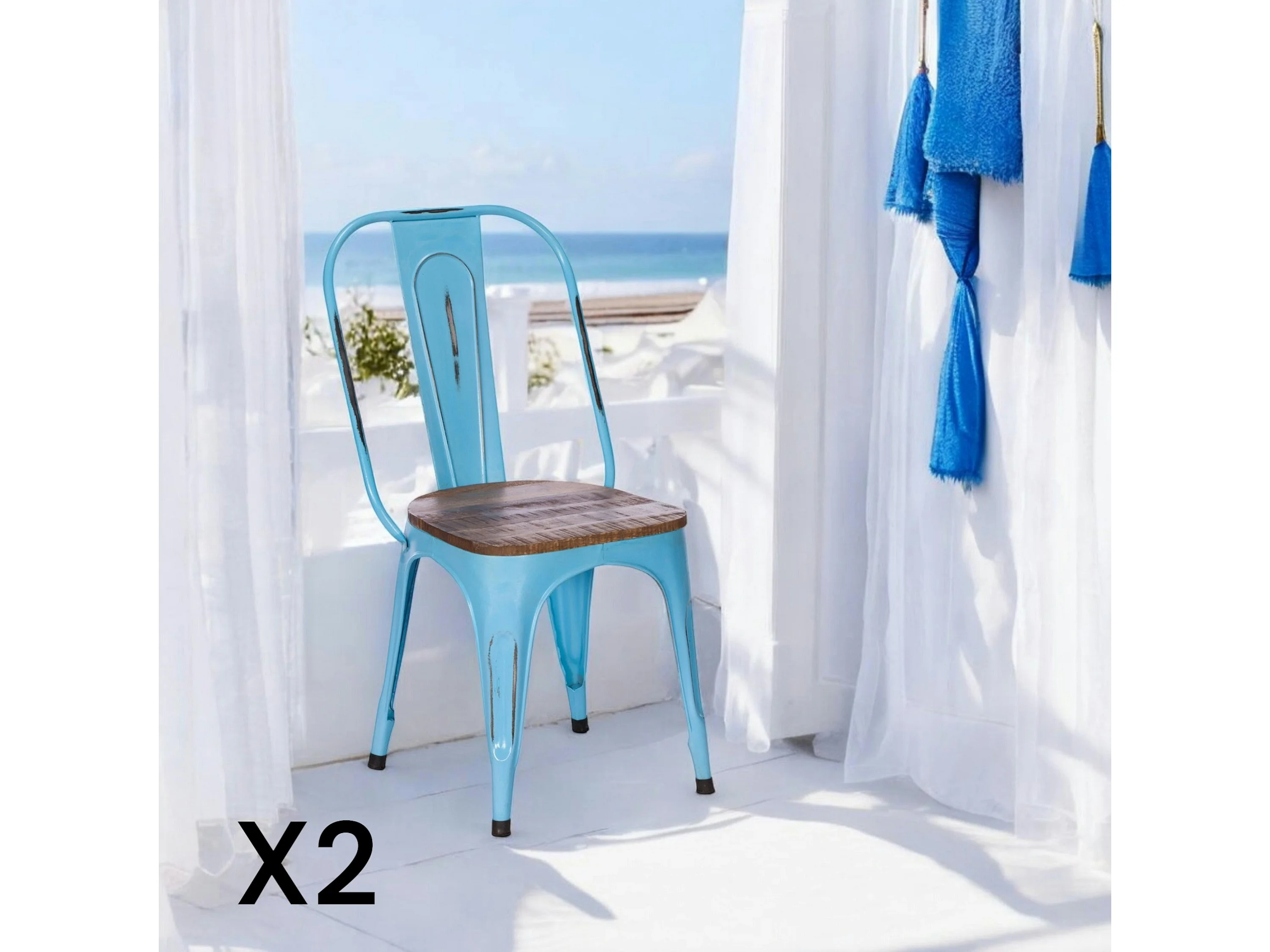 Chaise industrielle métal bleu bois recyclé LEEDS (lot de 2)
