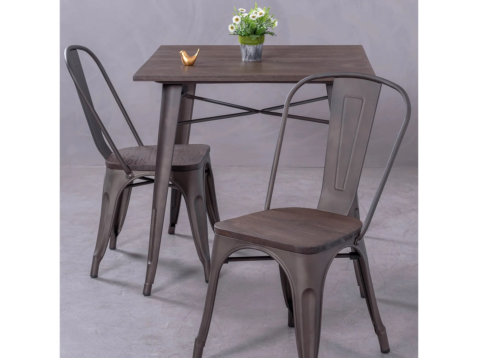 Chaise industrielle vieillie avec assise en bois foncé - Bistro - Antique