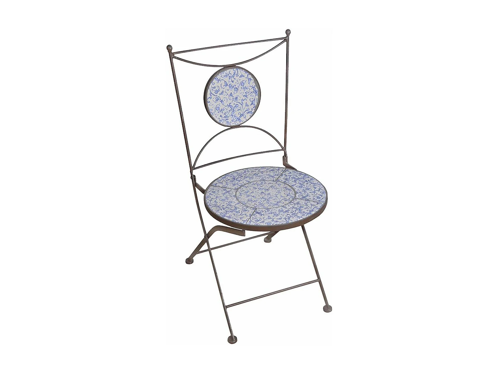 Lot de 2 Chaises de bistro pliables bleu et blanc céramique FR82077