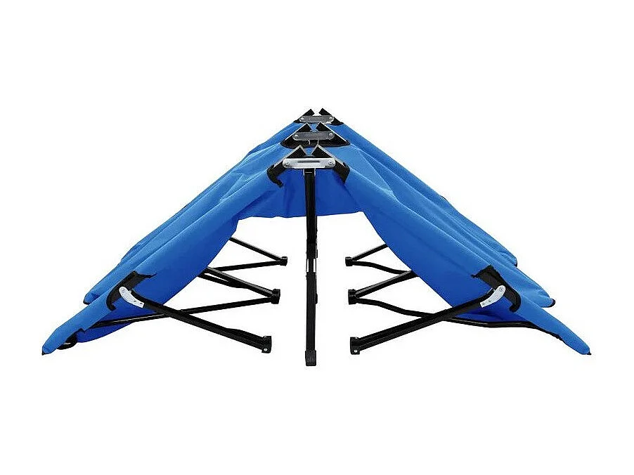 Chaise longue 2 places pliable tissu bleu et métal noir Bura
