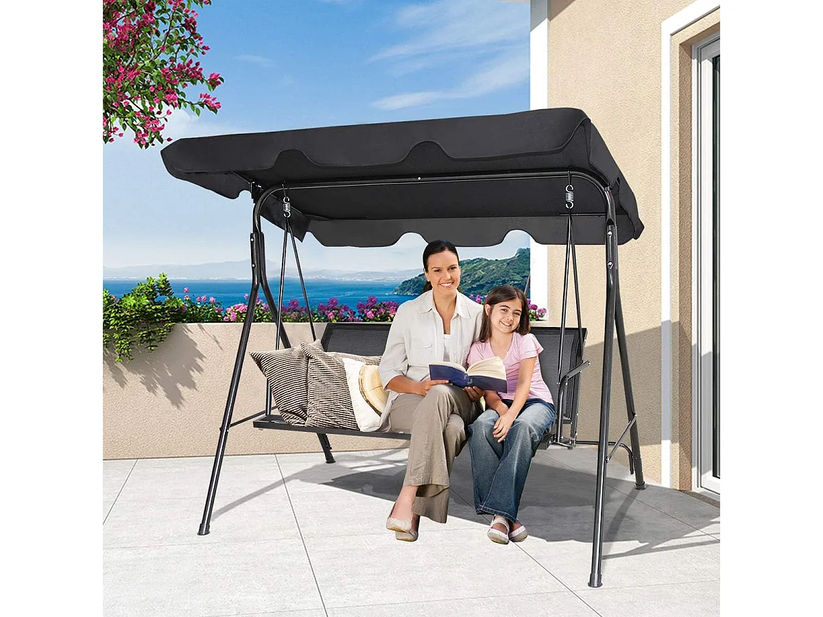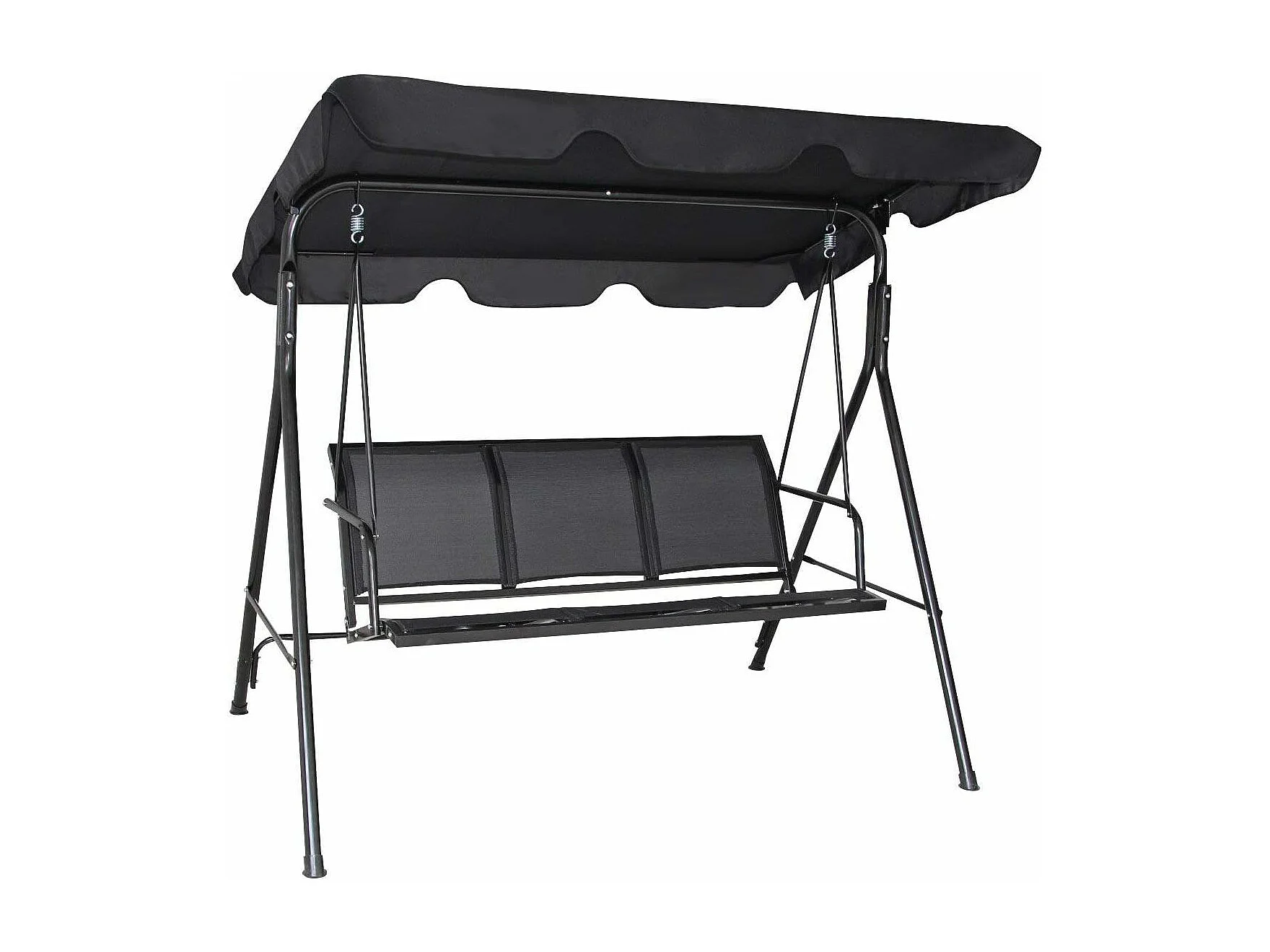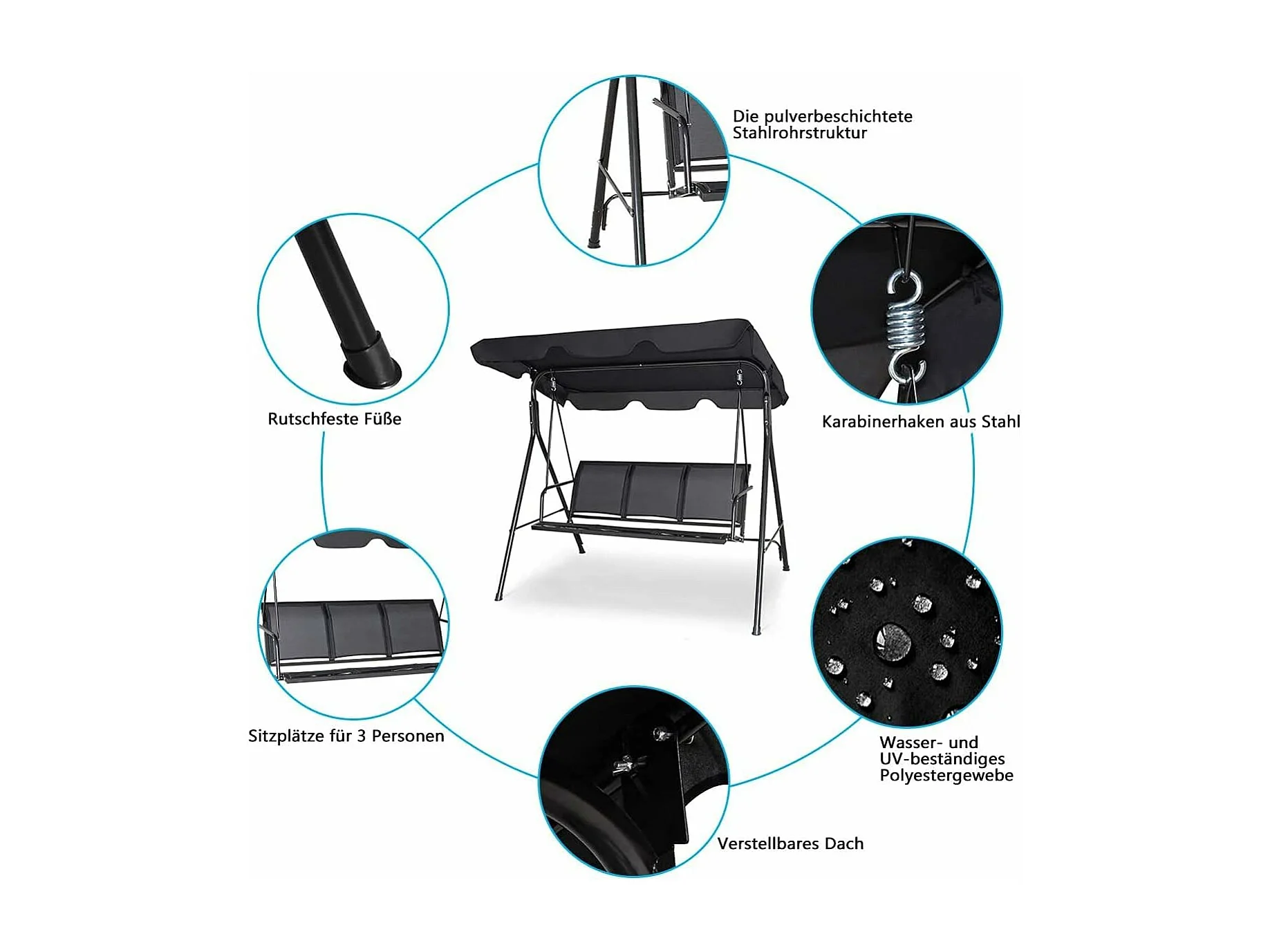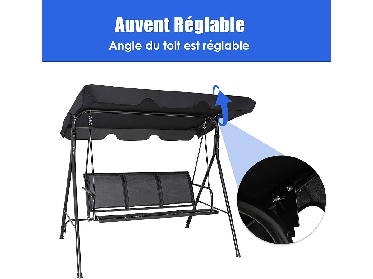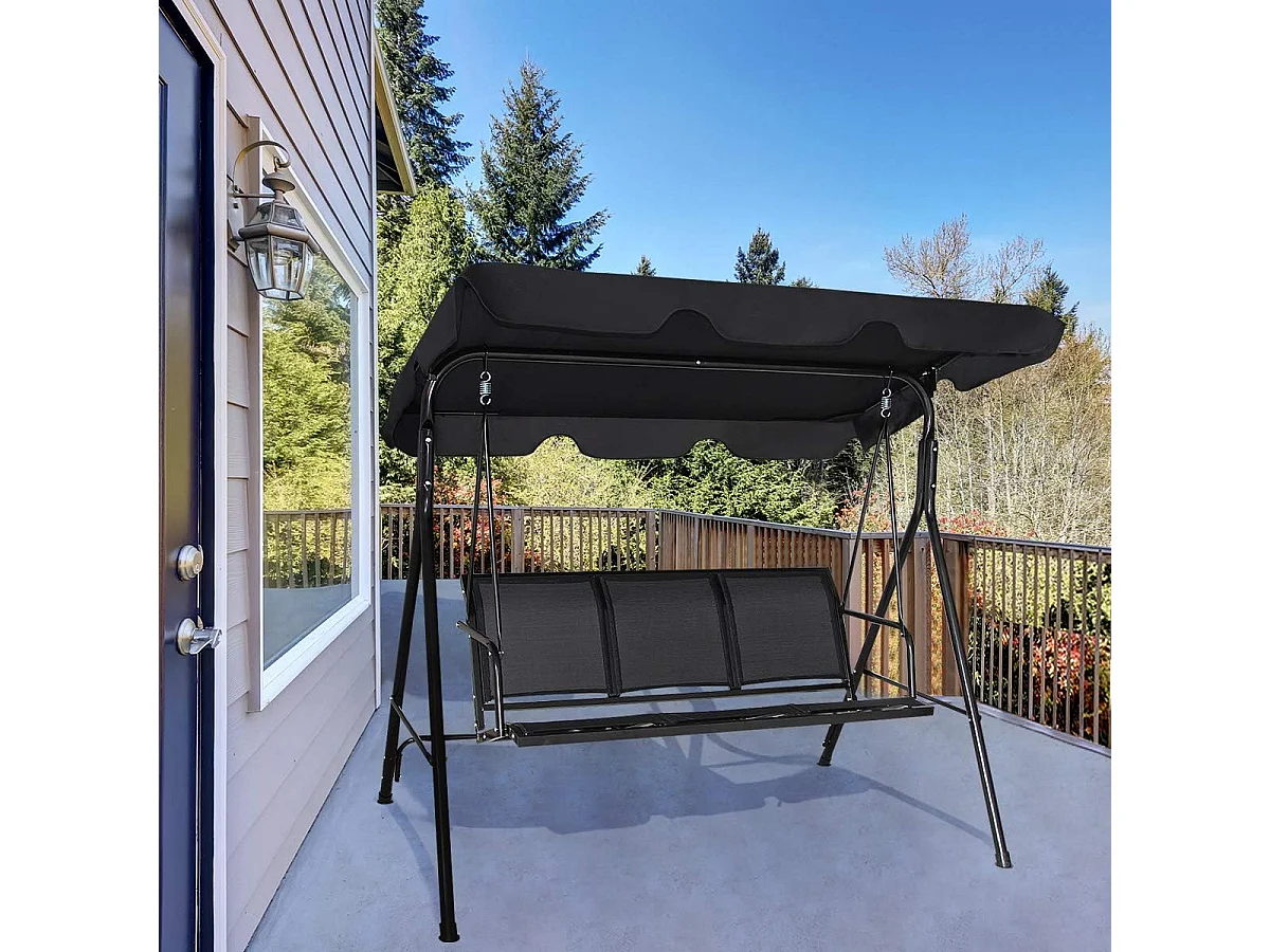 Balancelle de Jardin sur Pied pour 3 Personnes avec Toit Imperméabilisant Idéal pour Jardin Terrasse Noir