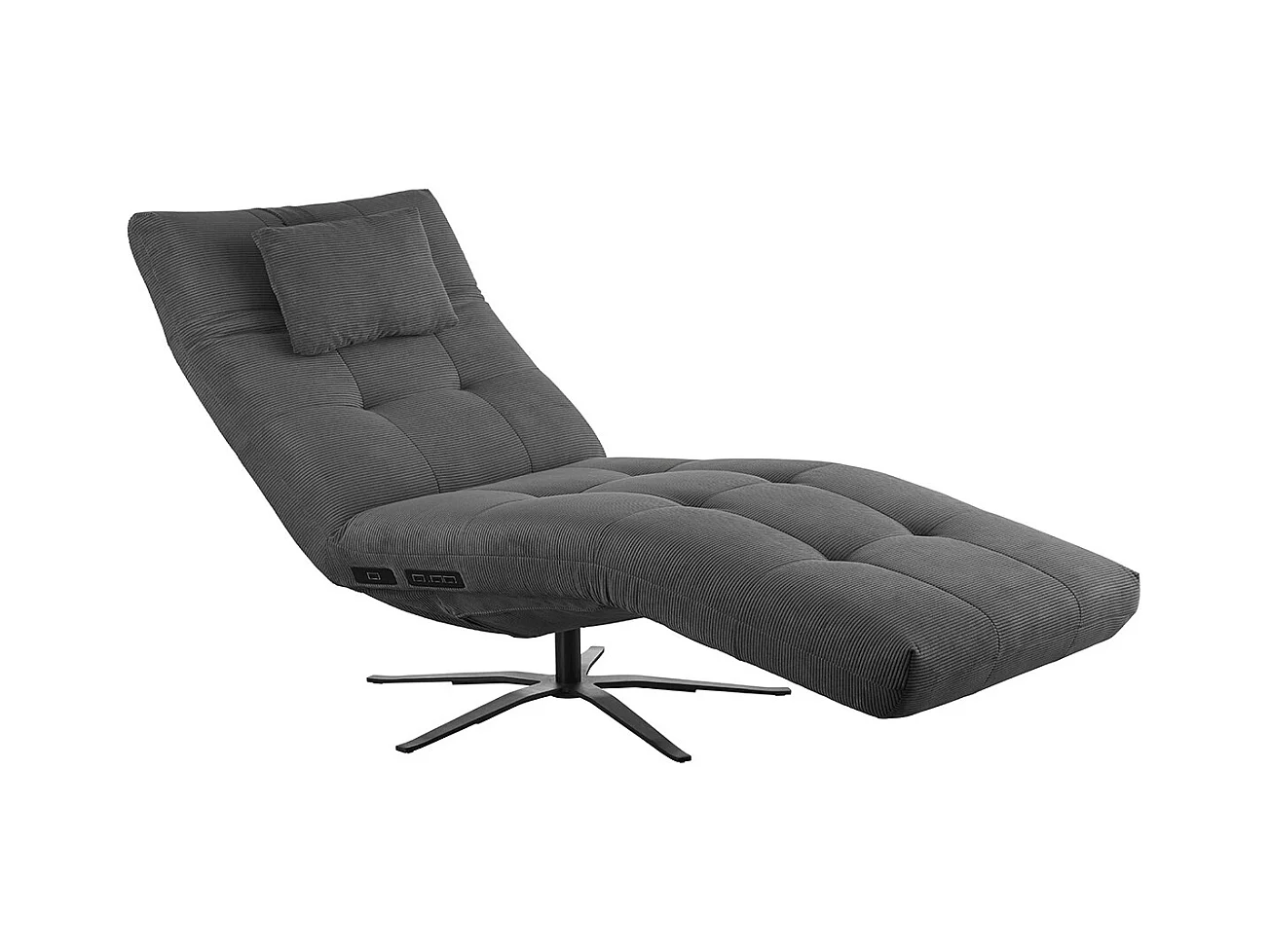 Chaise longue - anthracite Velours côtelé - LETICIA