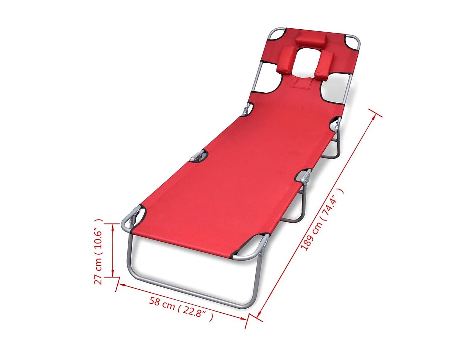 Chaise longue avec coussin de tête Acier enduit de poudre Rouge