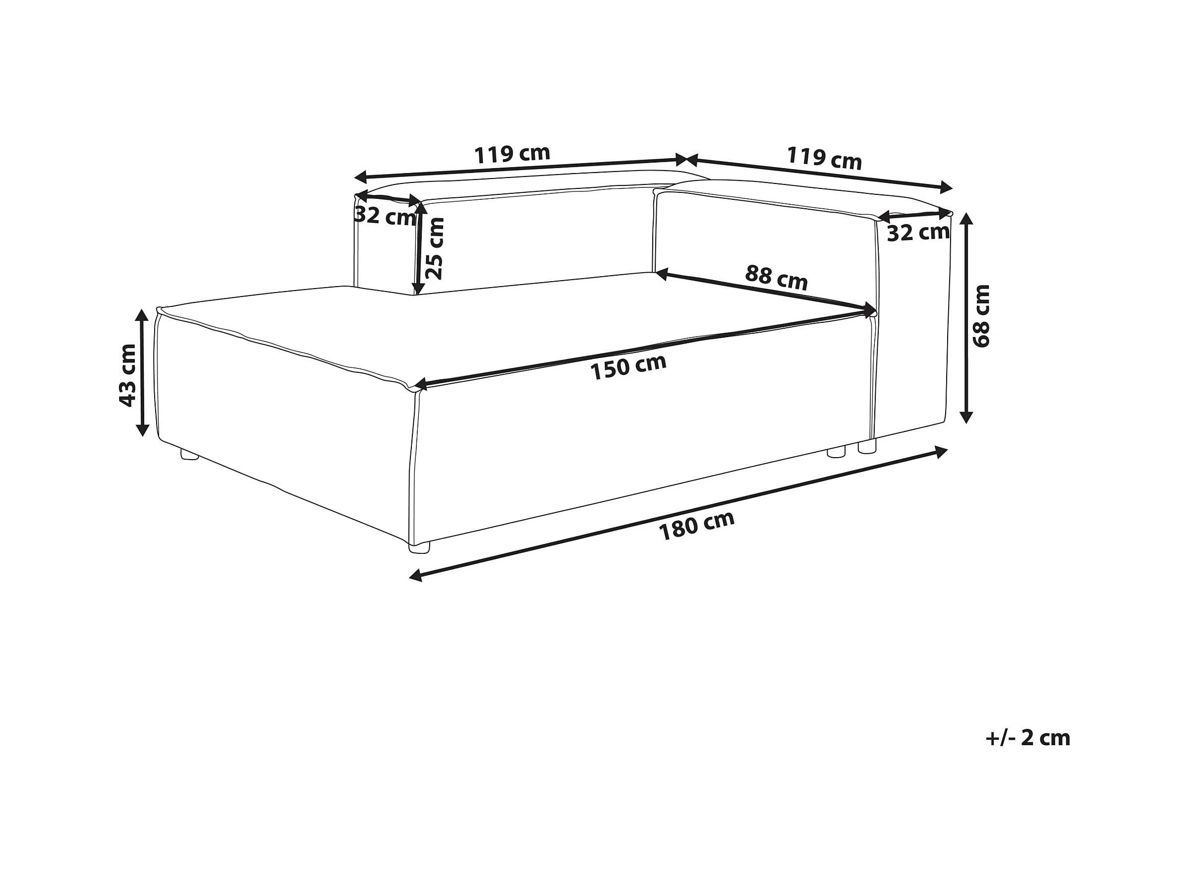 Chaise longue côté droit ARDAL Tissu Gris clair