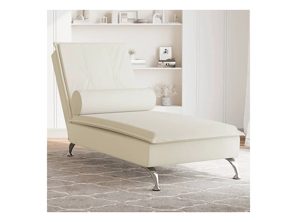 Chaise longue de massage avec traversin crème velours FR78959